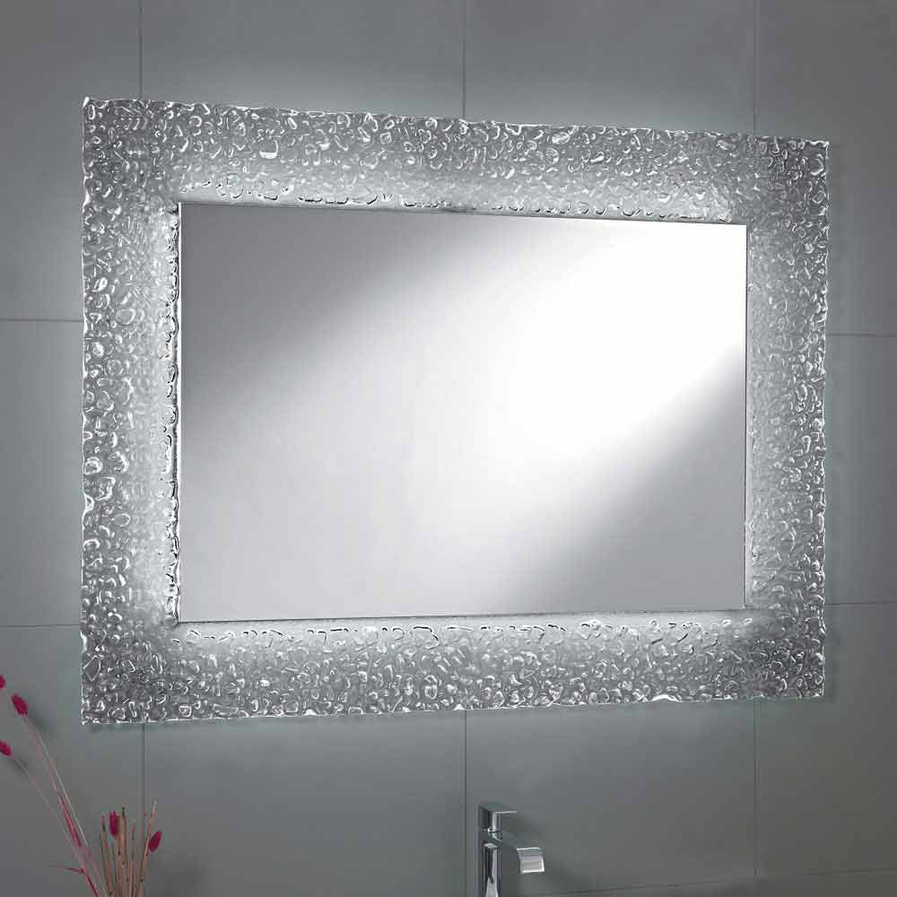 Tara bathroom mirror with glass frame and LED light, modern design.