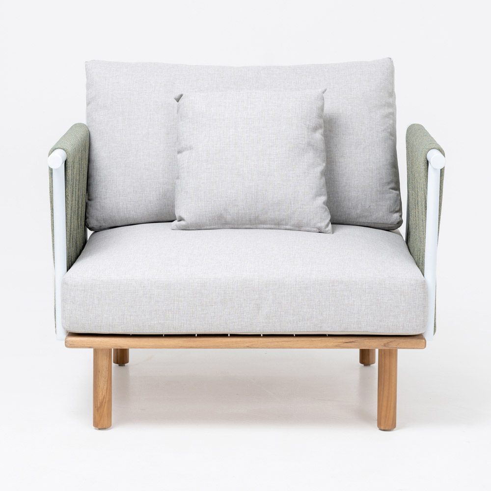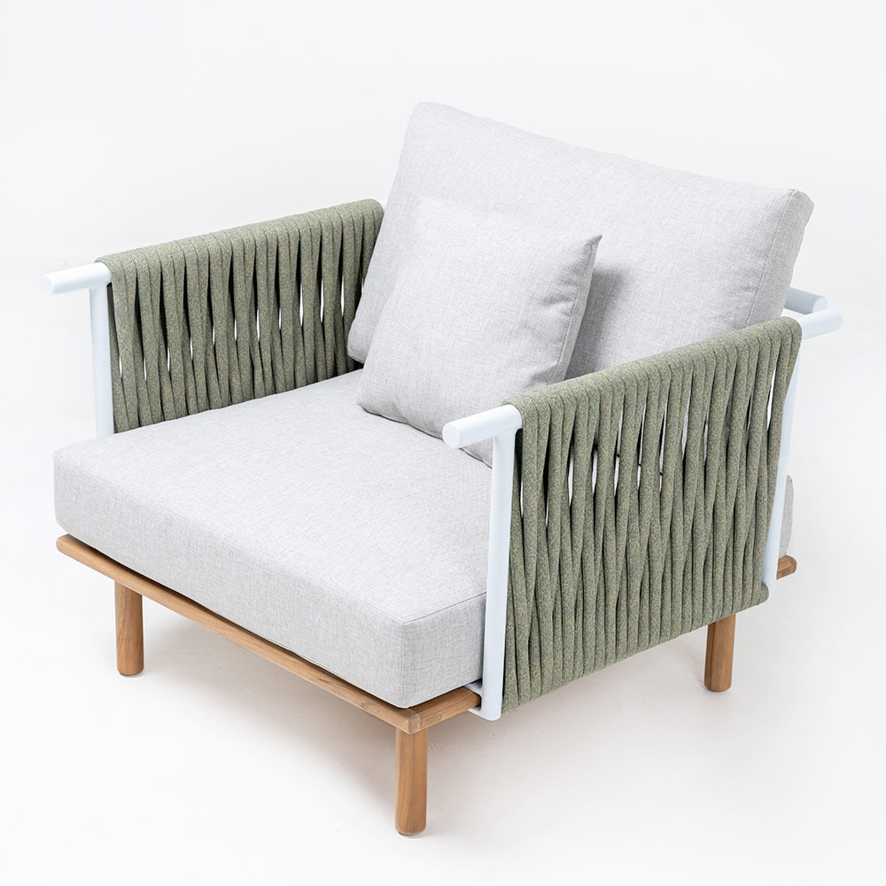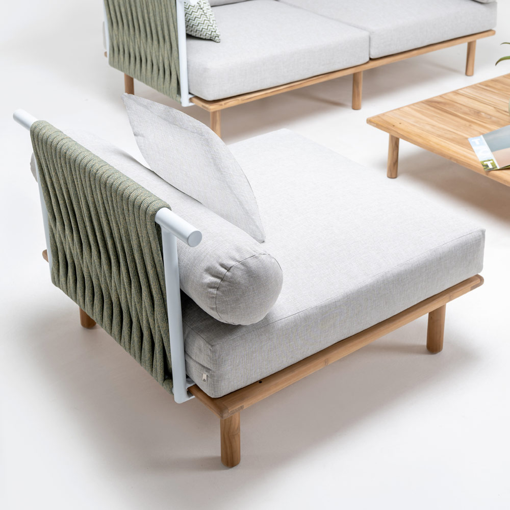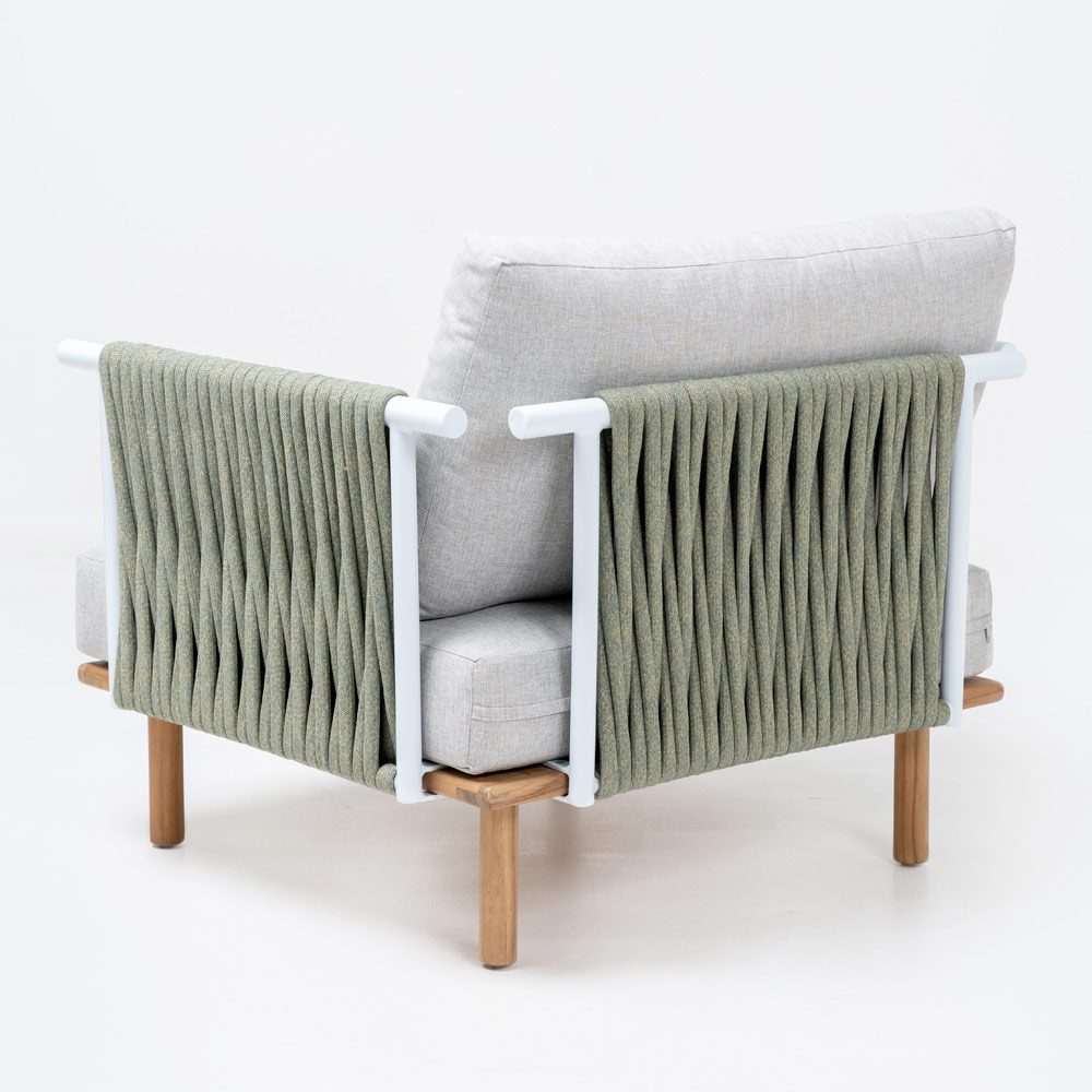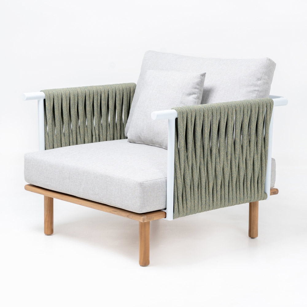 Teak garden armchair, aluminium backrests and Olefin/PP ROPE weave and cushion