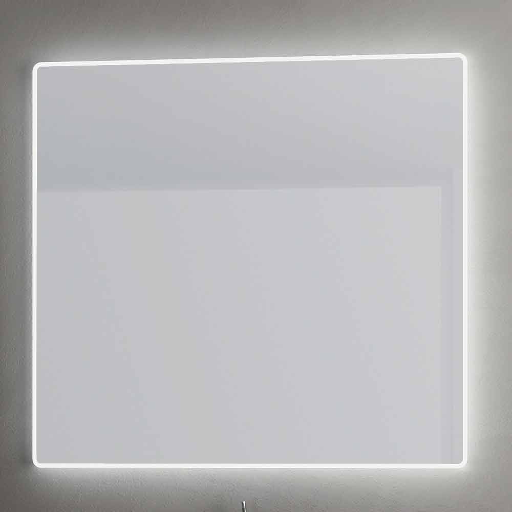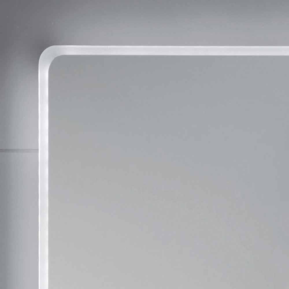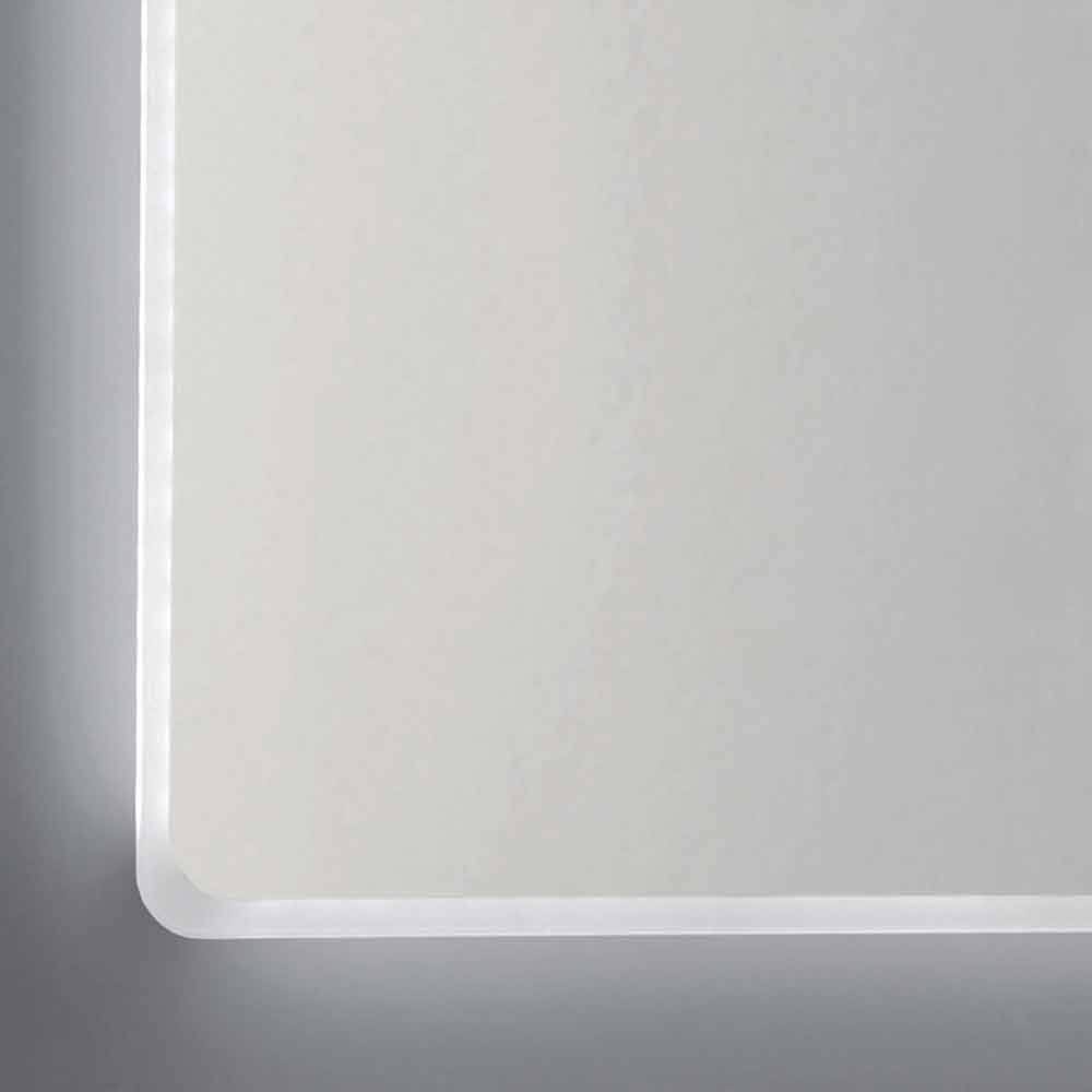Bathroom mirror with integrated LED lighting and sand-blasting effect. Round edges.