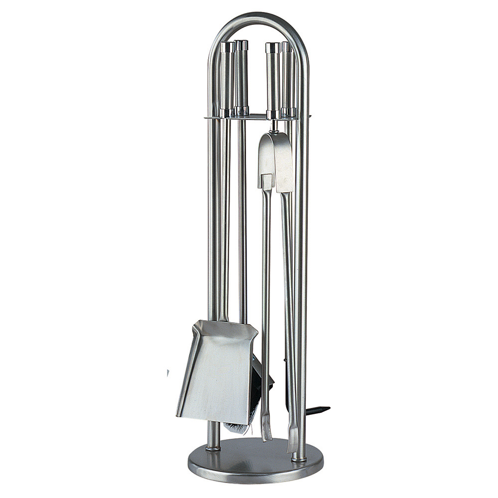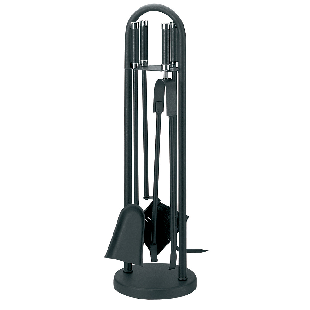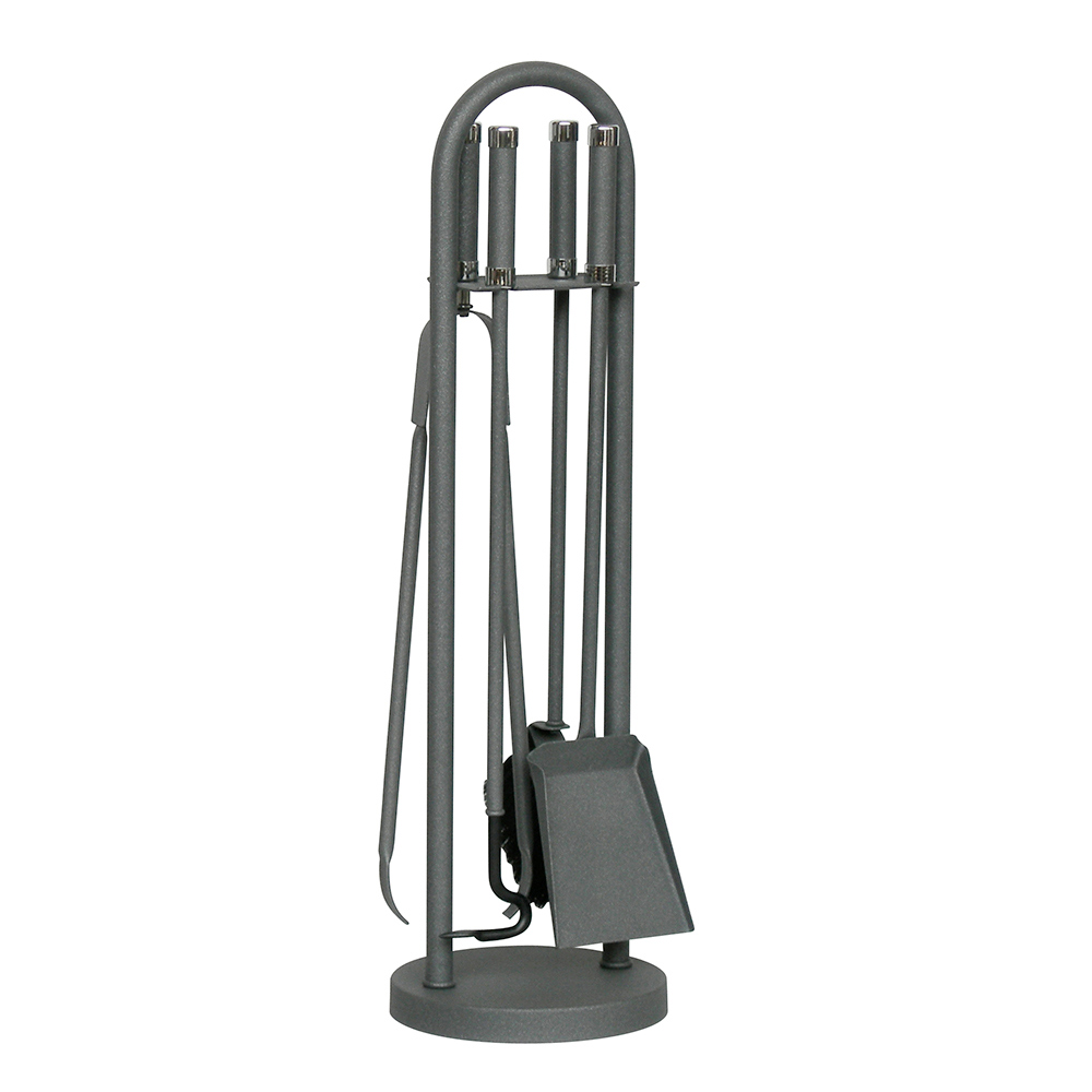 This elegant fireplace tool set is ideal for those who want to combine functionality with sophisticated aesthetics . The structure is characterized by rounded lines which adds a touch of class to any environment. Designed to take up little space, its vertical design makes it perfect for placing next to the fireplace without getting in the way.