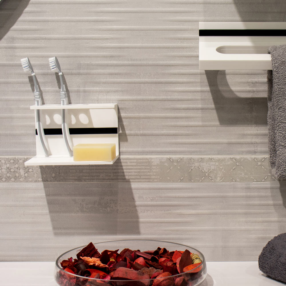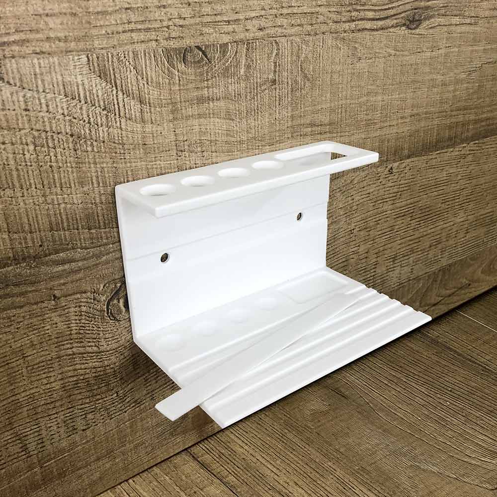 Choose this toothbrush holder , toothpaste and soap 6 mm thick as a bathroom accessory for a modern and luxurious atmosphere entirely made of Corian, a hygienic material with essential lines.
