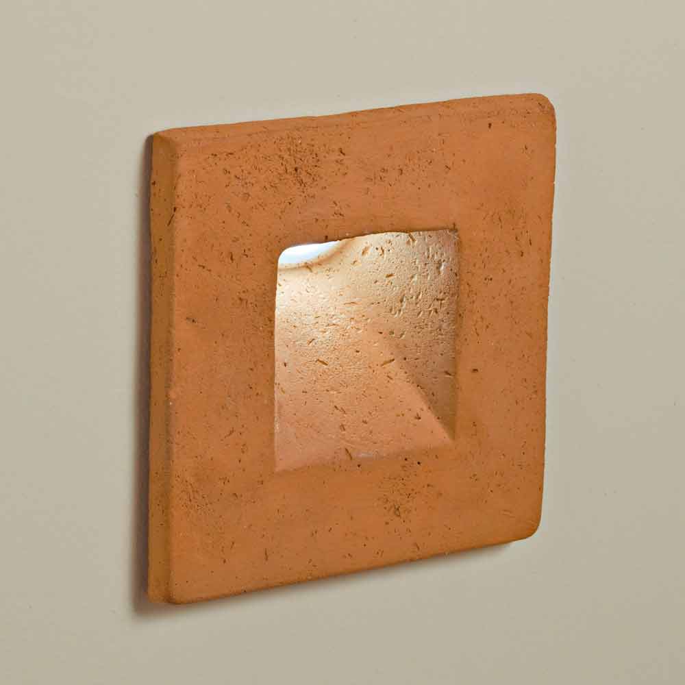 Square is a recessed LED wall light with a square shape made entirely by hand in terracotta. Unique and robust wall lamp for classic or rustic exteriors, to illuminate porches, avenues or passageways, characterized by a minimal design, creating small niches where the light hides and illuminates with all its elegance. Its finish is done with specific colors for the exterior. Square is a unique and original applique, made entirely by hand according to the true Tuscan tradition. Its lines are current and modern, suitable for various environments. Lamp ranging from retro to modern. This small wall lamp guarantees a direct light beam with an angle of 40 °. Made with high quality materials, Square is available in different color temperatures of the LED light, choose the one that suits you best!
