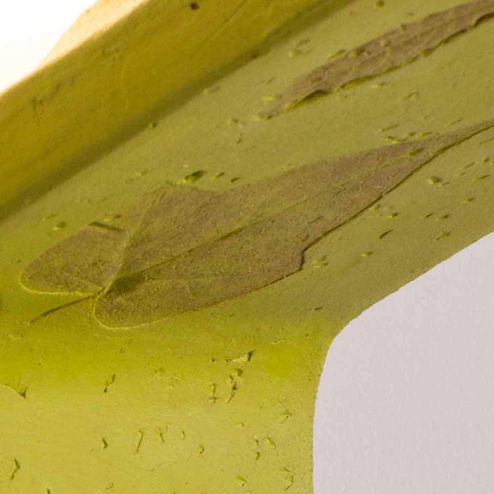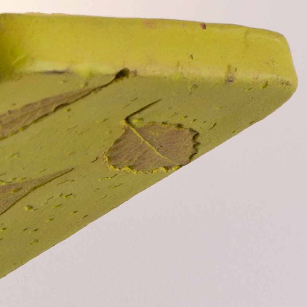 The design of this decoration is produced using real leaves pressed by hand directly into the cast.