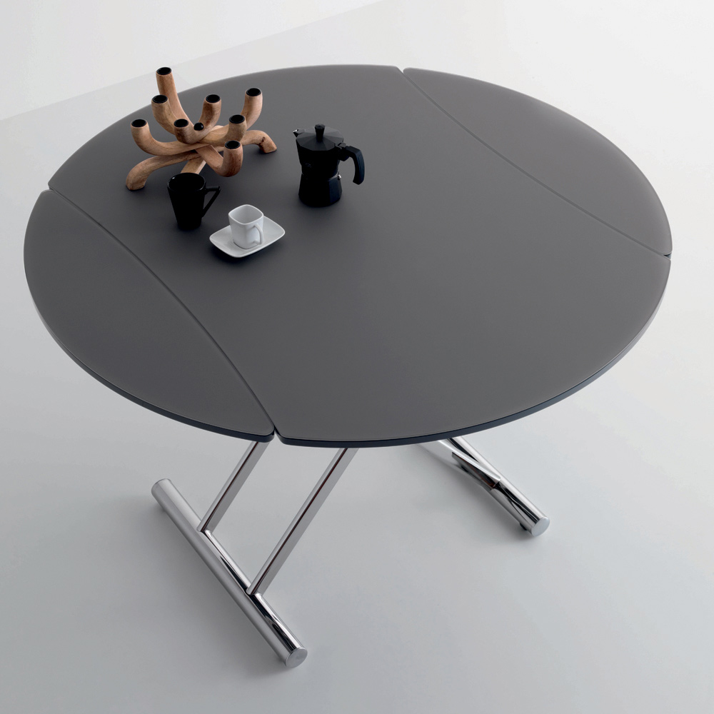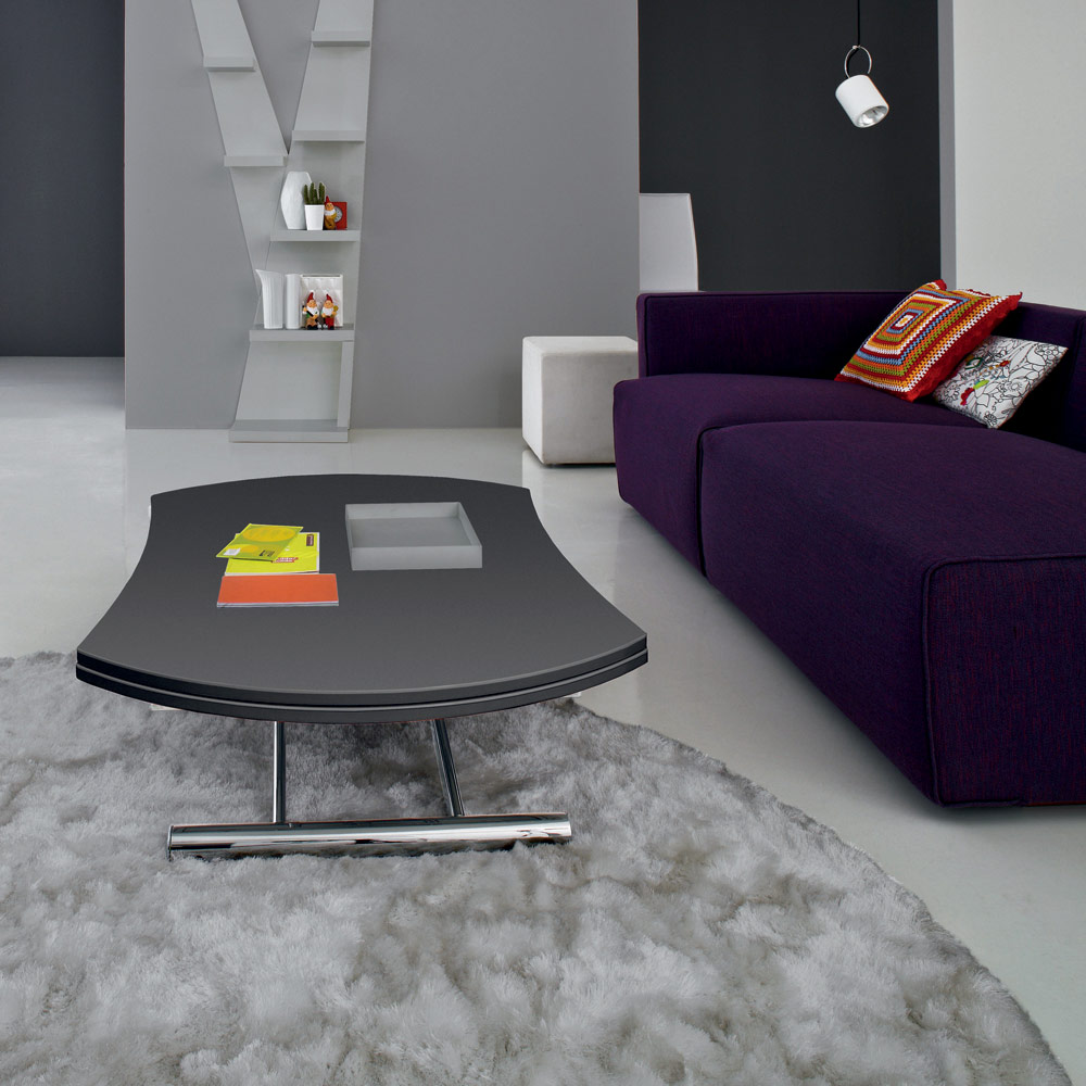 coffee table converts into a dining table through a gas mechanism