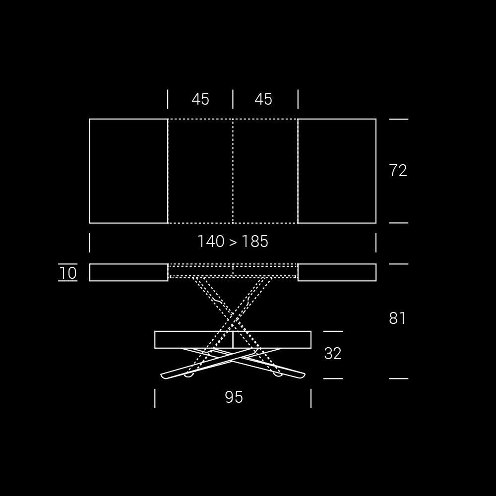 NB : when opening the table, it is necessary to lift the extension, position it at the level of the top and, only then, open it.
