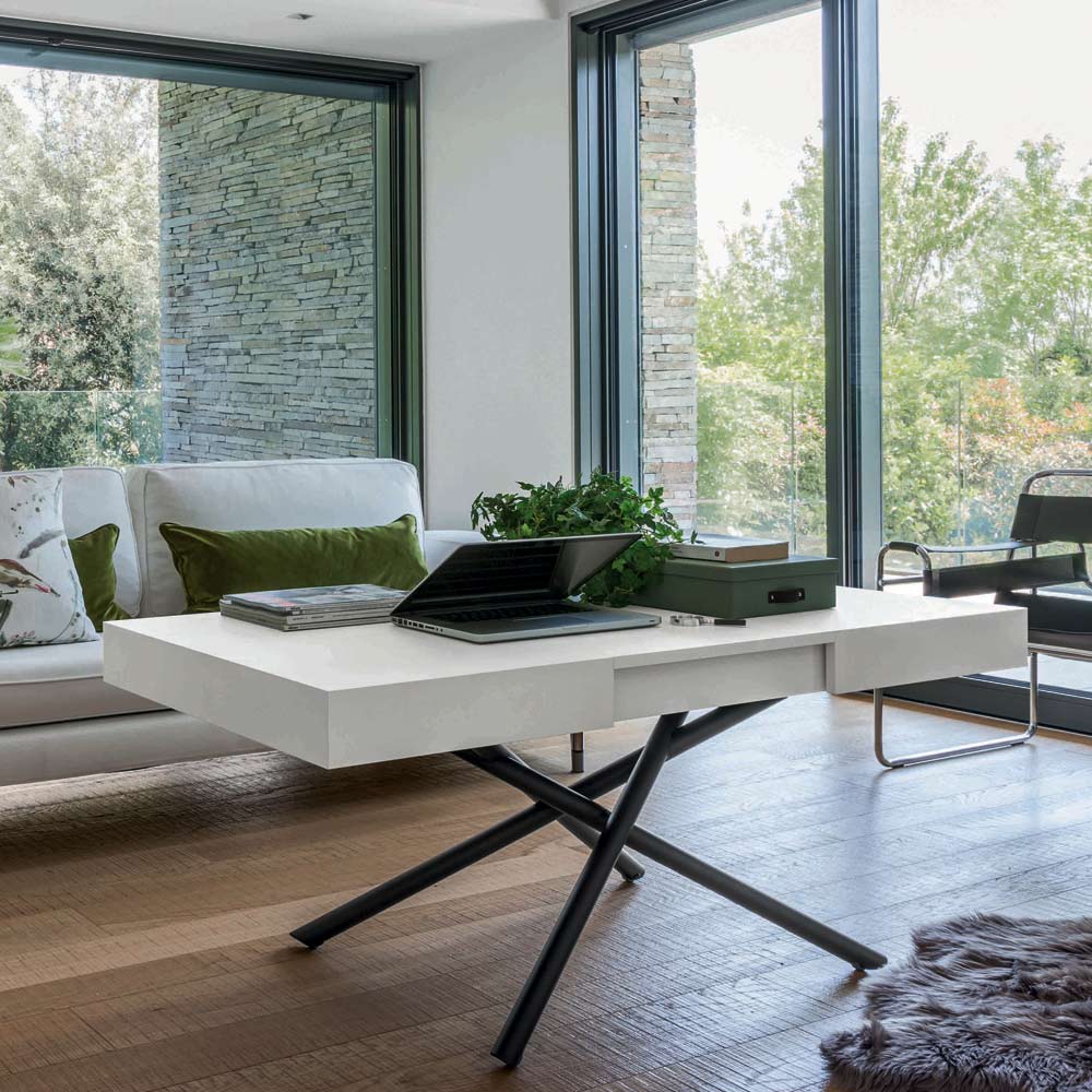 Convertible coffee table in laminated wood and metal Made in Italy.