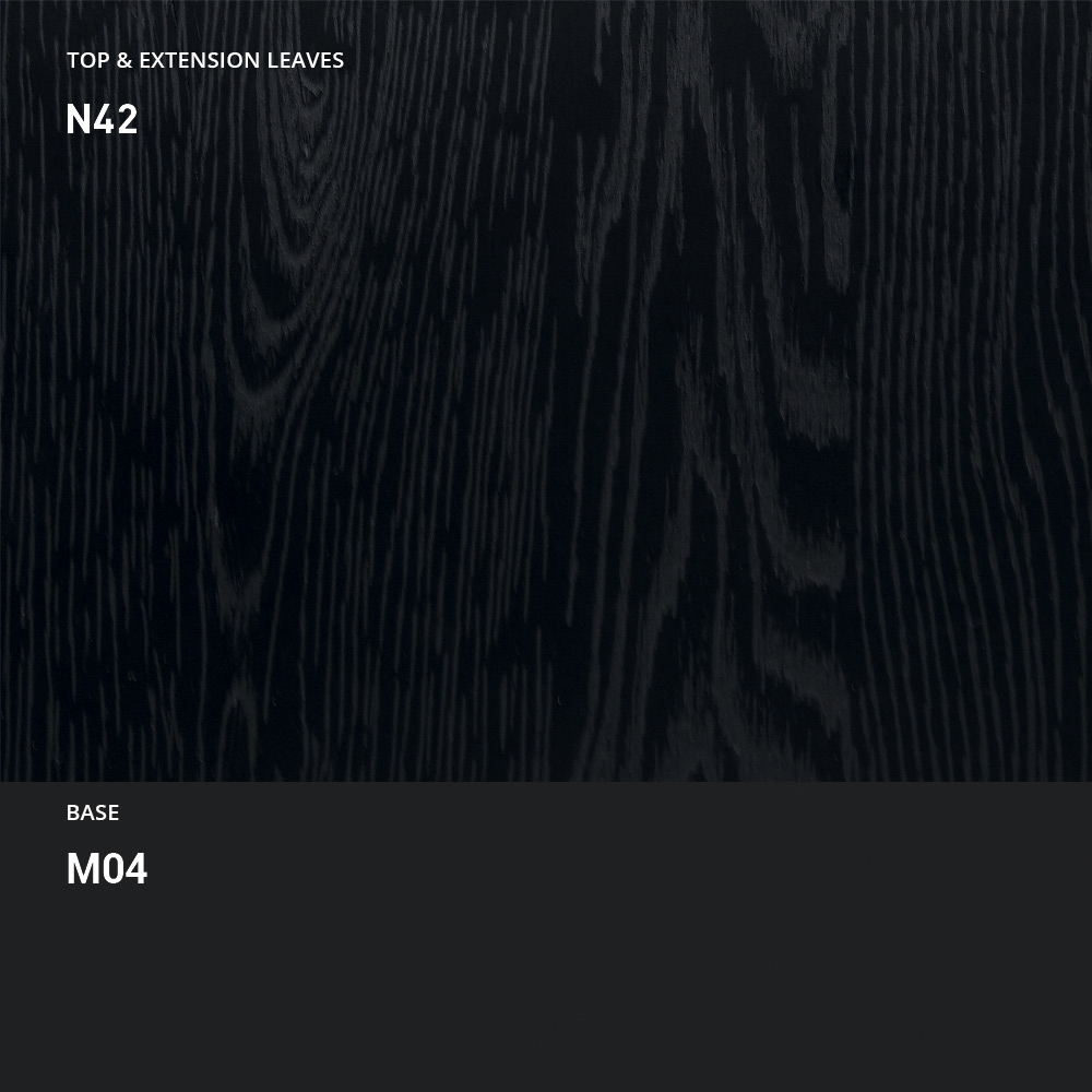 matt black painted metal base. Its space-saving aesthetic is perfect for optimising space in small dining rooms or living rooms. This is possible thanks to the