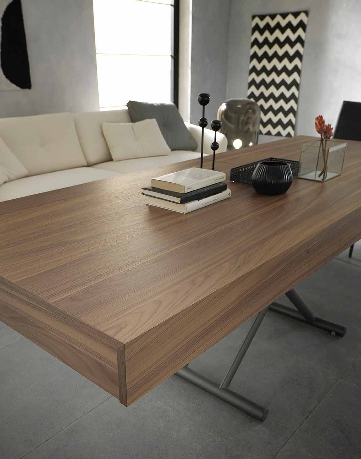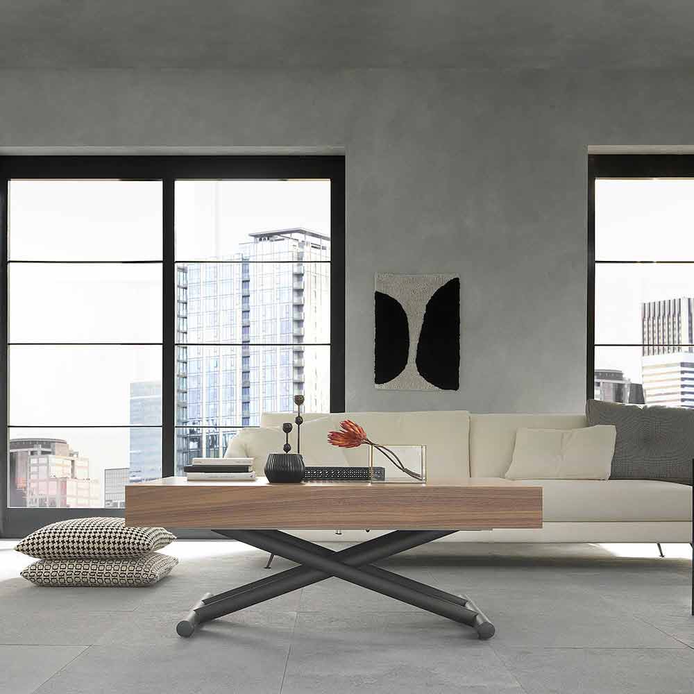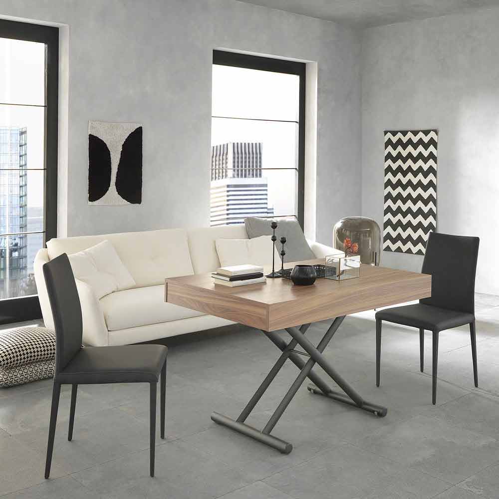 This transformable coffee table is characterised by elegant and essential lines that accompany a versatile design suitable for furnishing any style of environment. Able to transform from a coffee table to a dining room or kitchen table , thanks to a gas mechanism that can be adjusted in height to the millimetre from 28 cm to 80 cm.