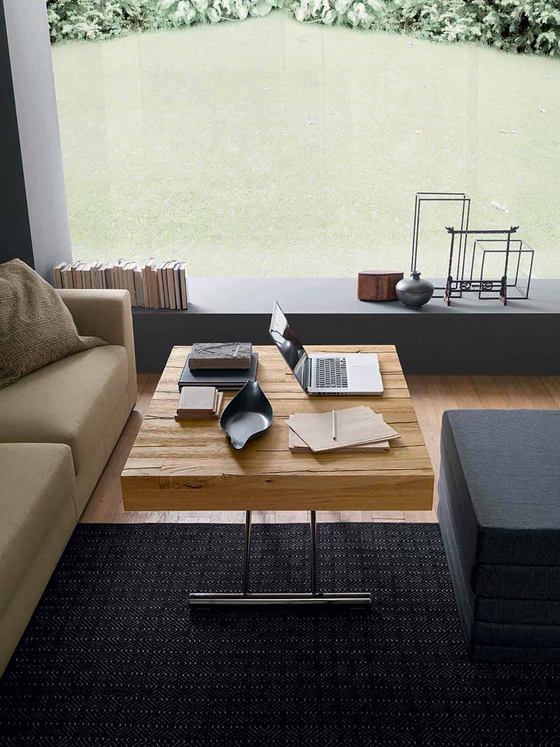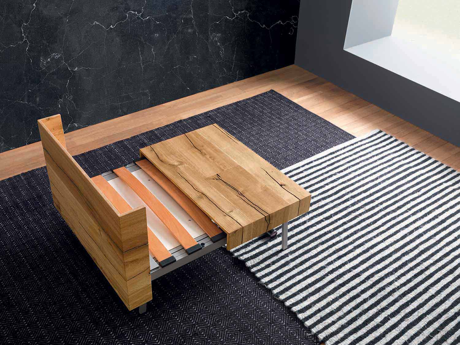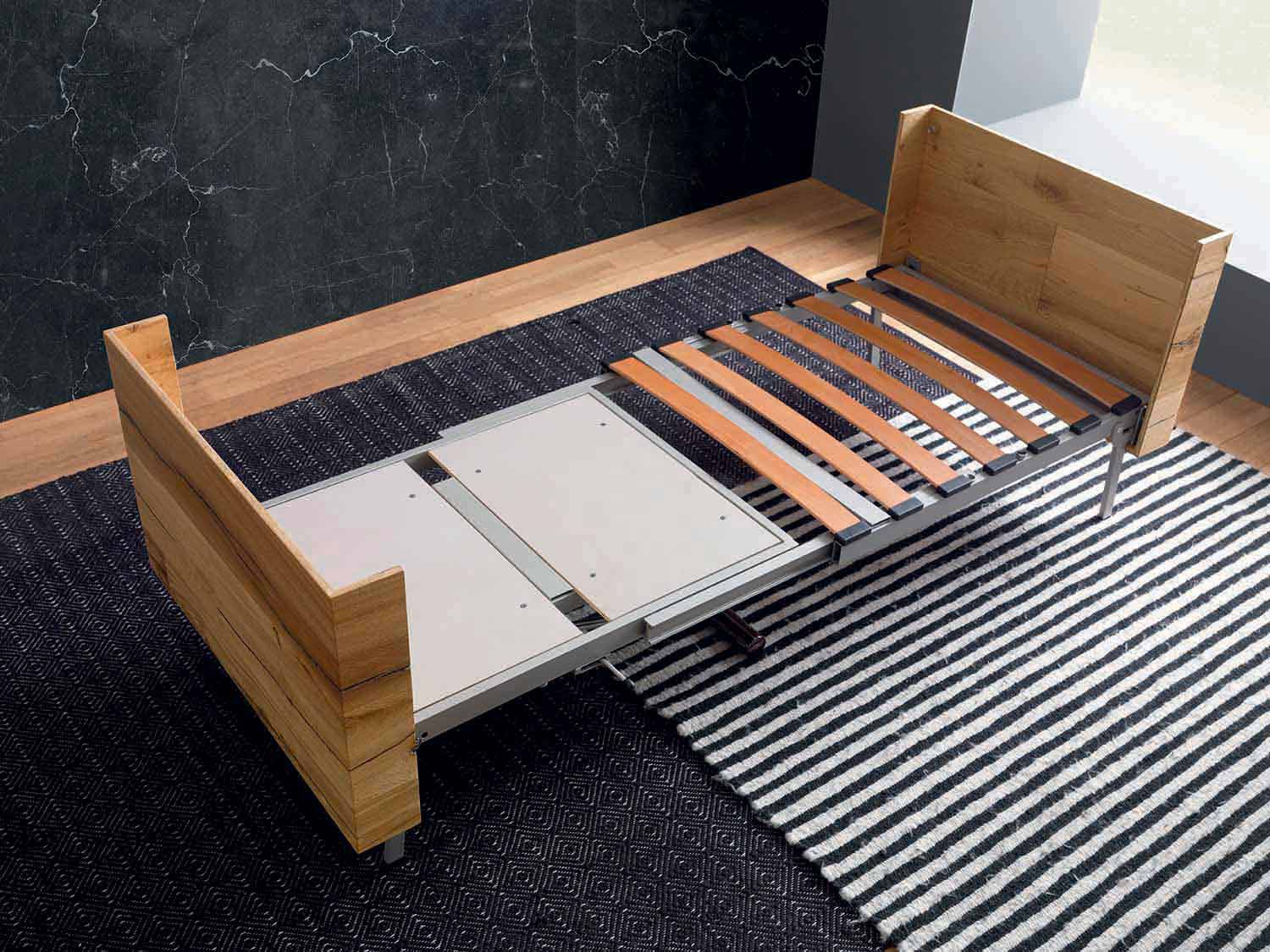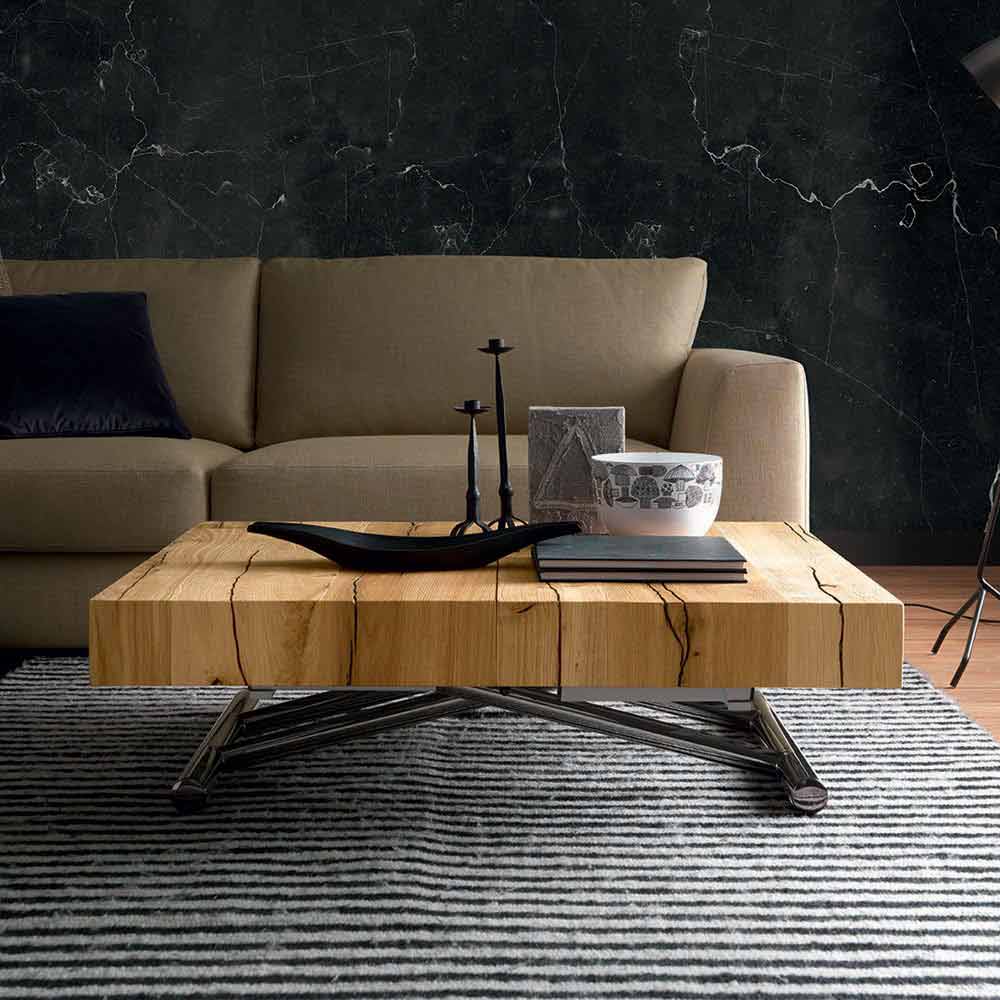 Modern coffee table in solid wood and metal that can be transformed into a dining table or bed Made in Italy.
