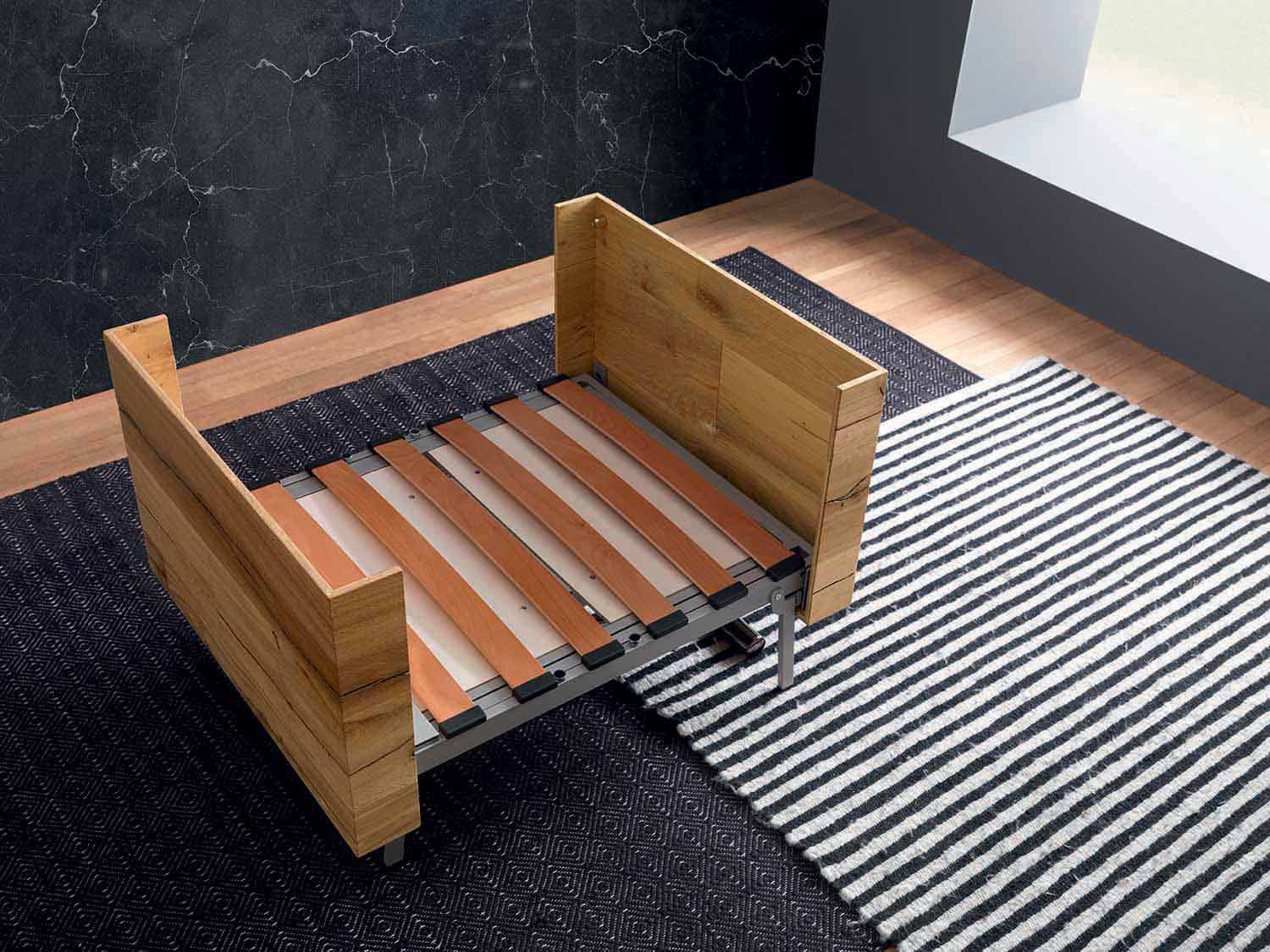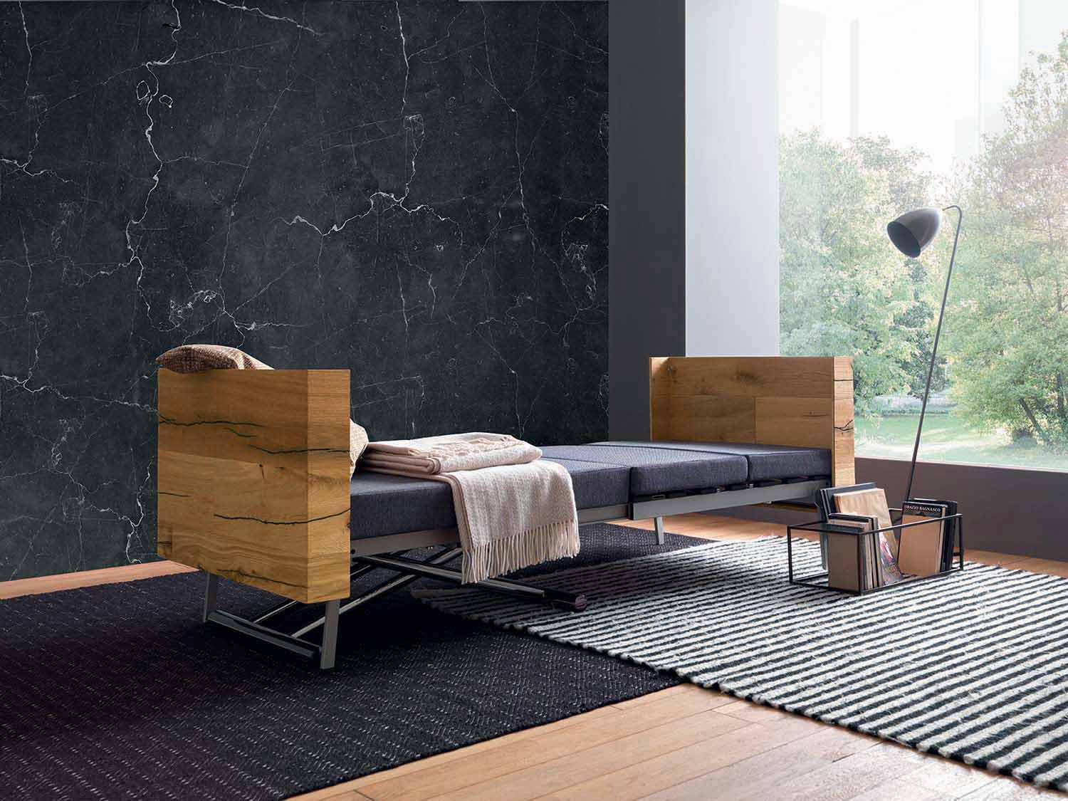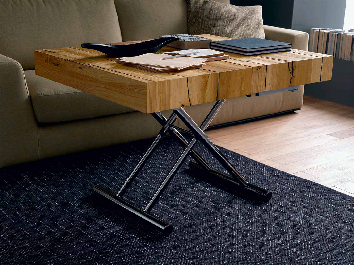 Modern coffee table in solid wood and metal that can be transformed into a dining table or bed Made in Italy.