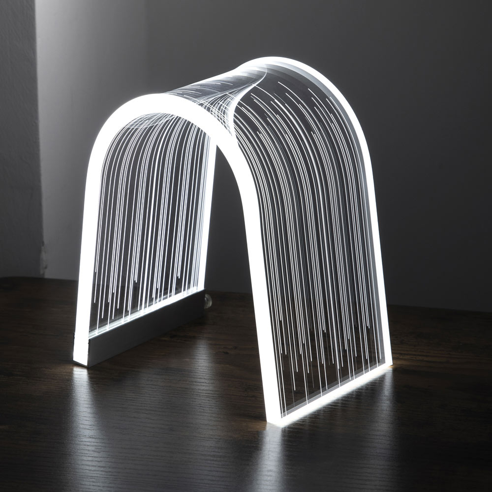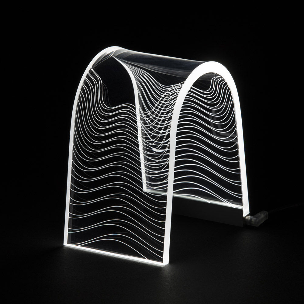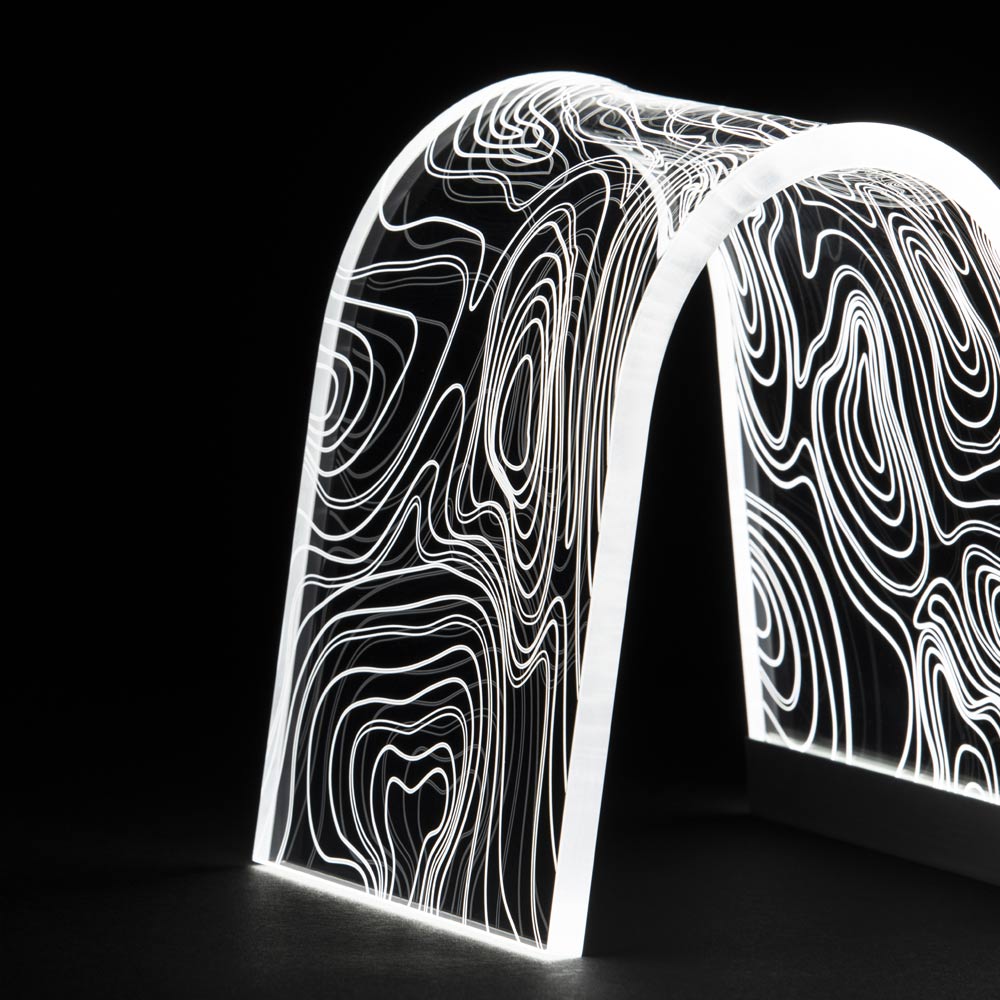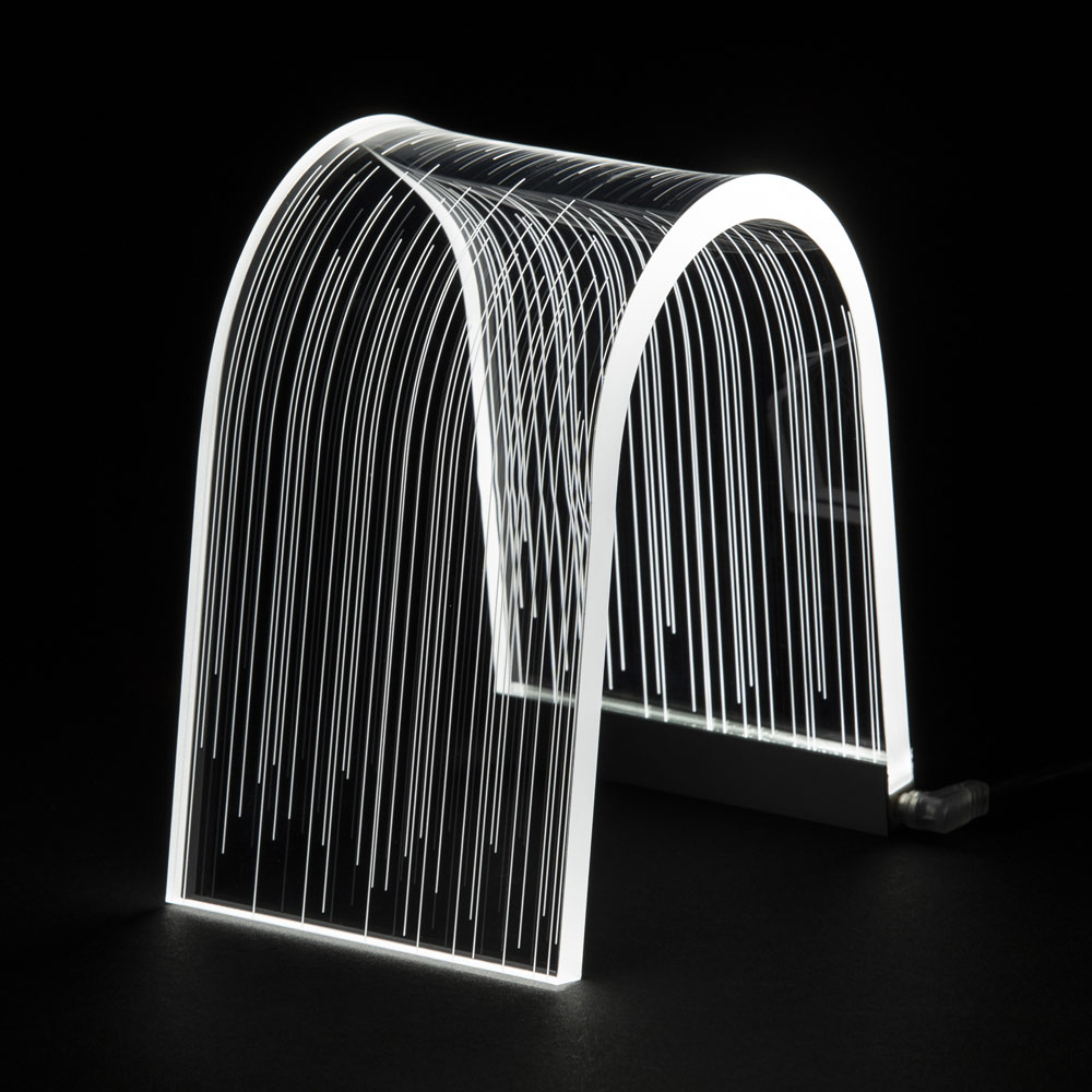 Arch support lamp in acrylic crystal and laser engraved decorations, 2 sizes made in Italy.