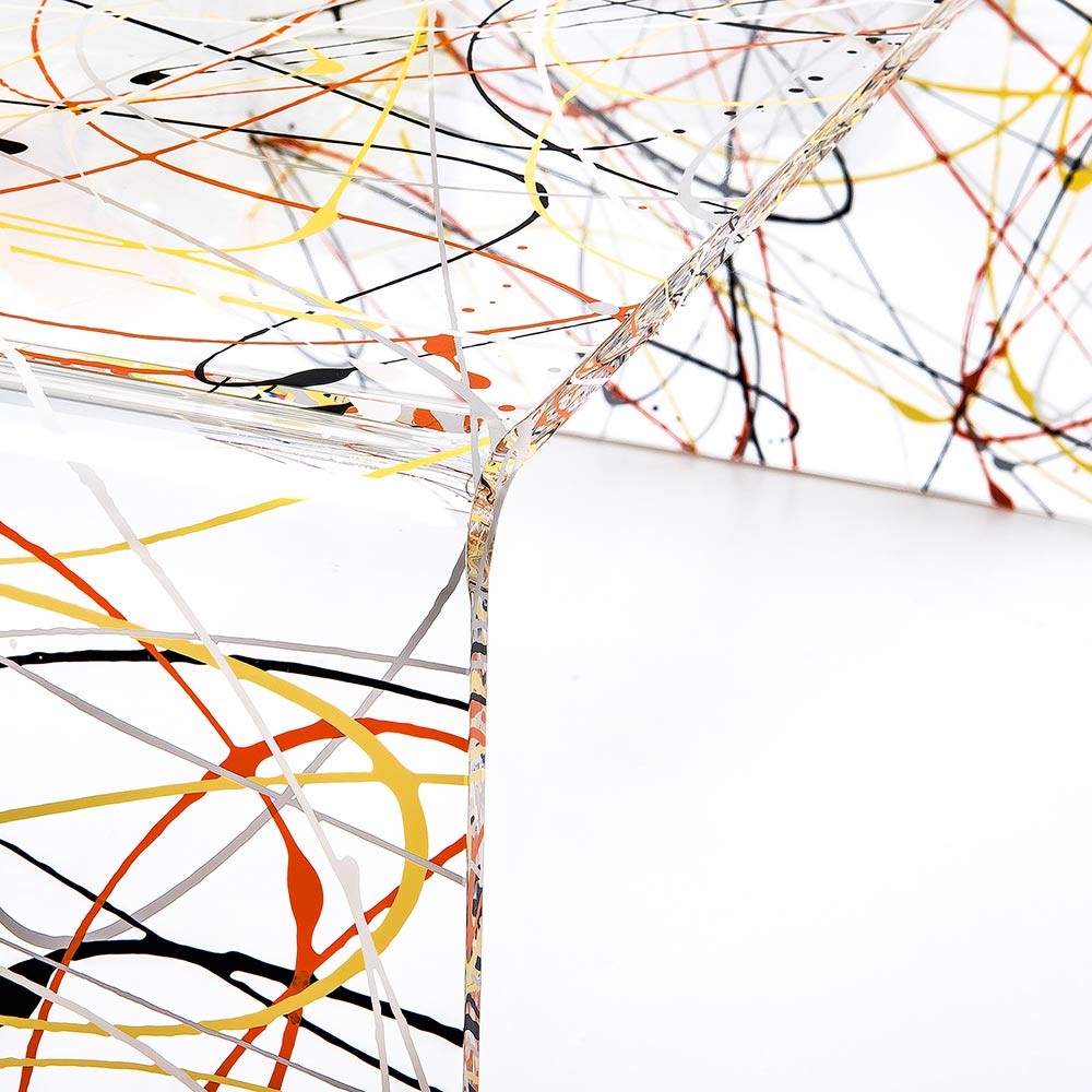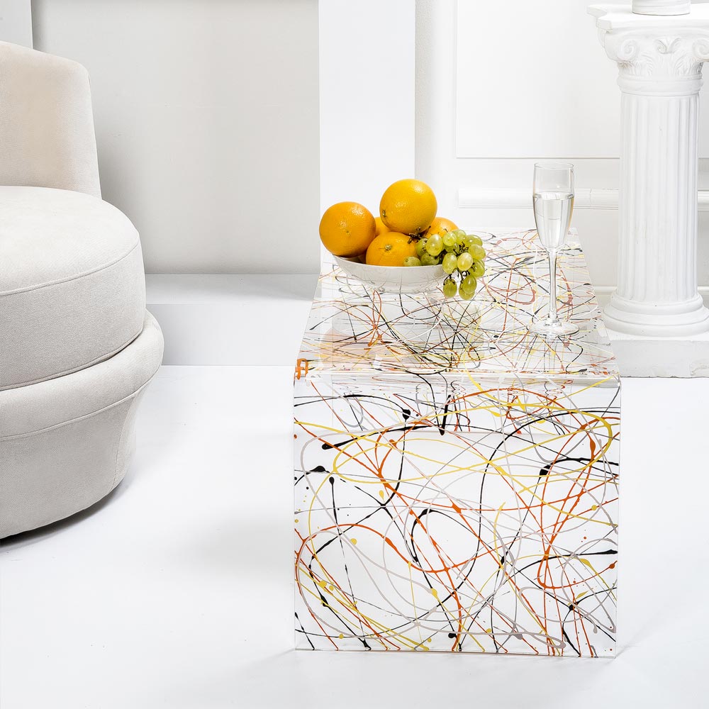 Coffee table conceived, designed and made in Italy through the use of innovative and quality materials such as transparent plexiglass with multicolor decorations which is ideal as it is non-toxic, hypoallergenic, odourless, antibacterial and 100% recyclable. This coffee table was designed to furnish the living room or sleeping area with taste and functionality, acting as a modern, simple and versatile furnishing element .