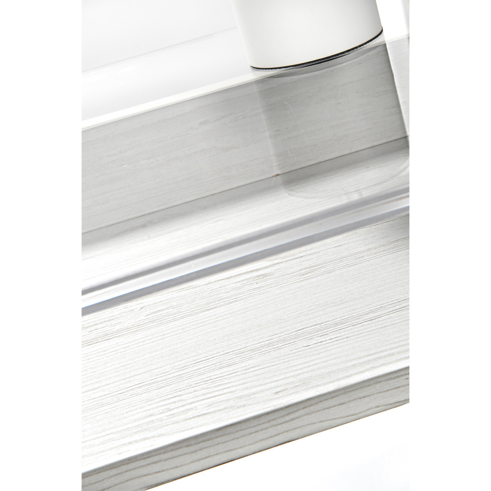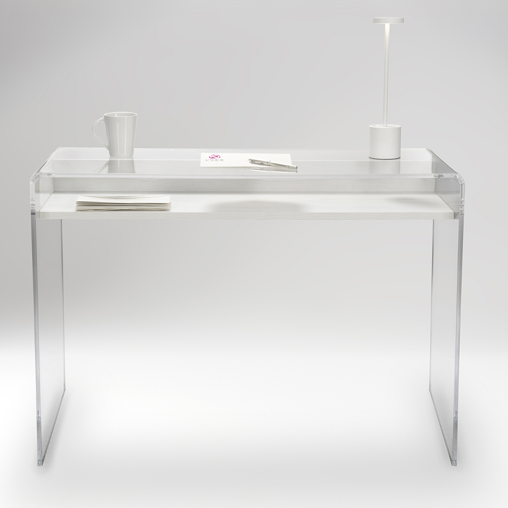 - transparent plexiglass with white wood essence shelf