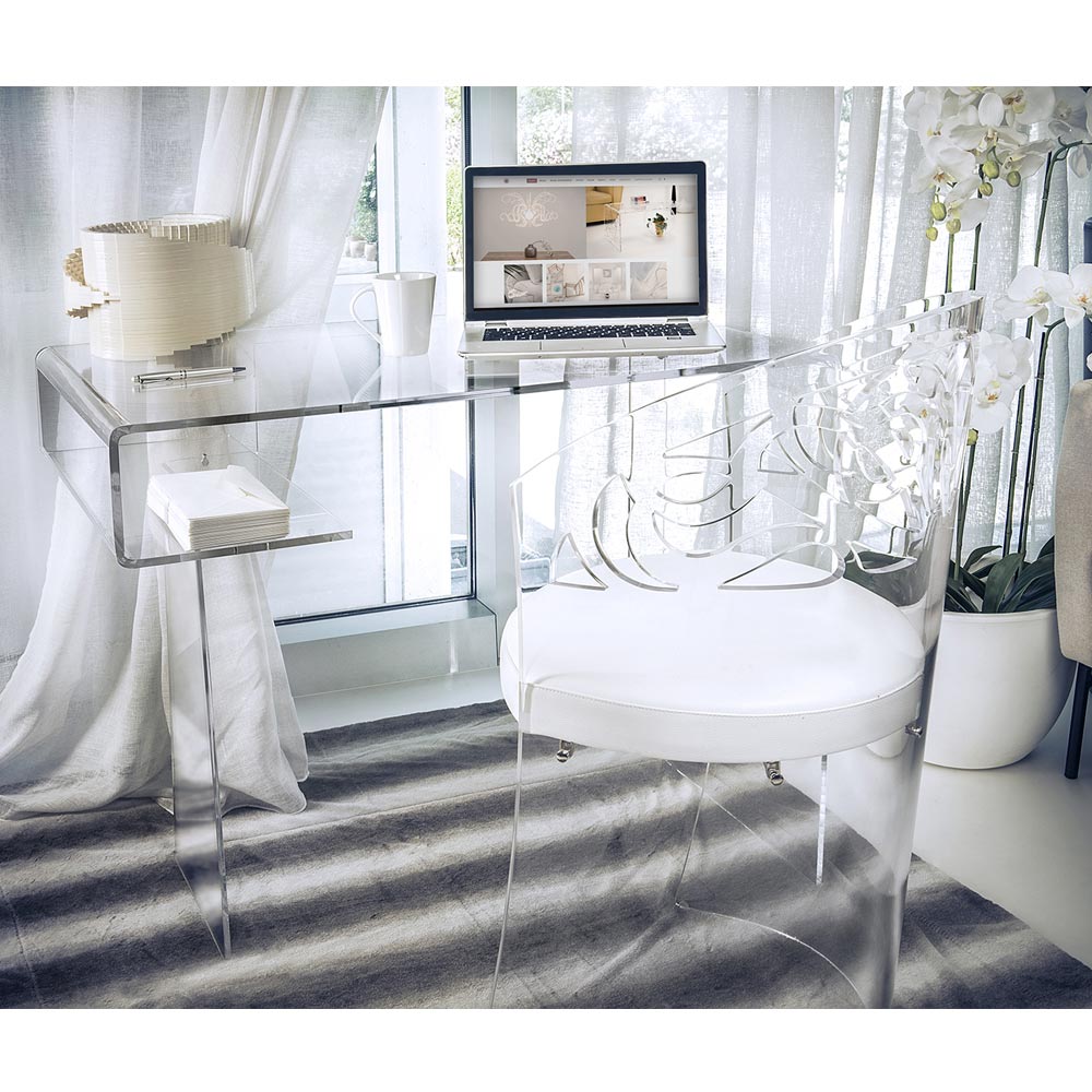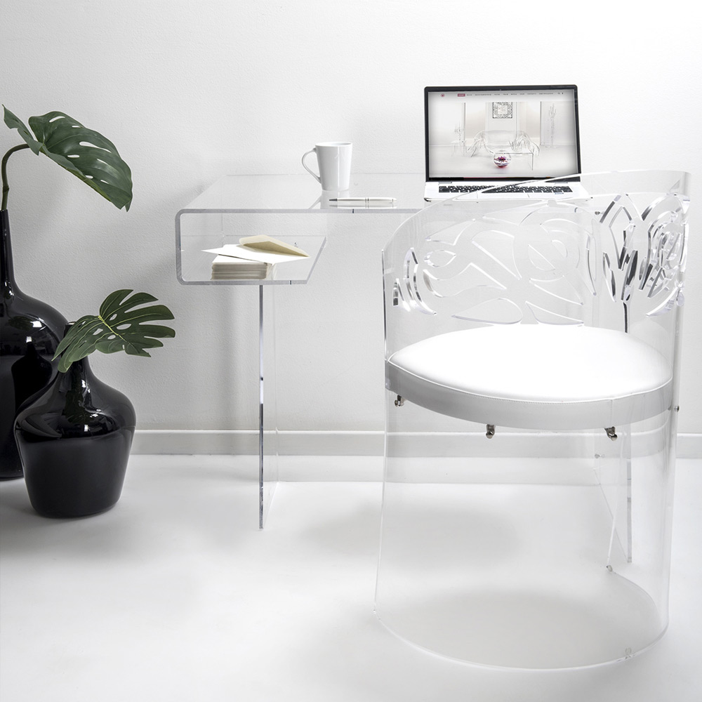 Modern desk in transparent plexiglass with Made in Italy shelf.