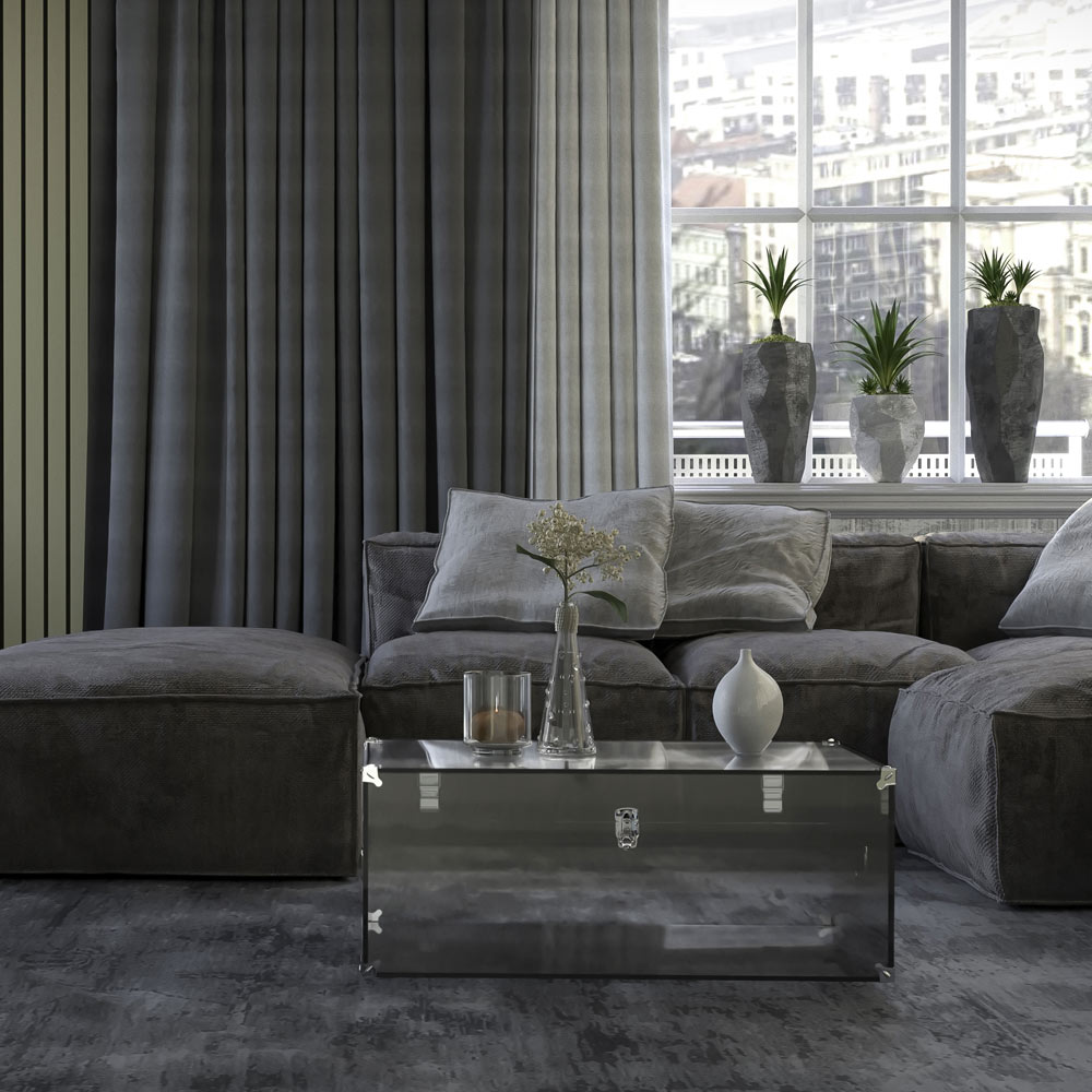 Trunk in Transparent or Smoked Acrylic Crystal and Modern Steel - Dante