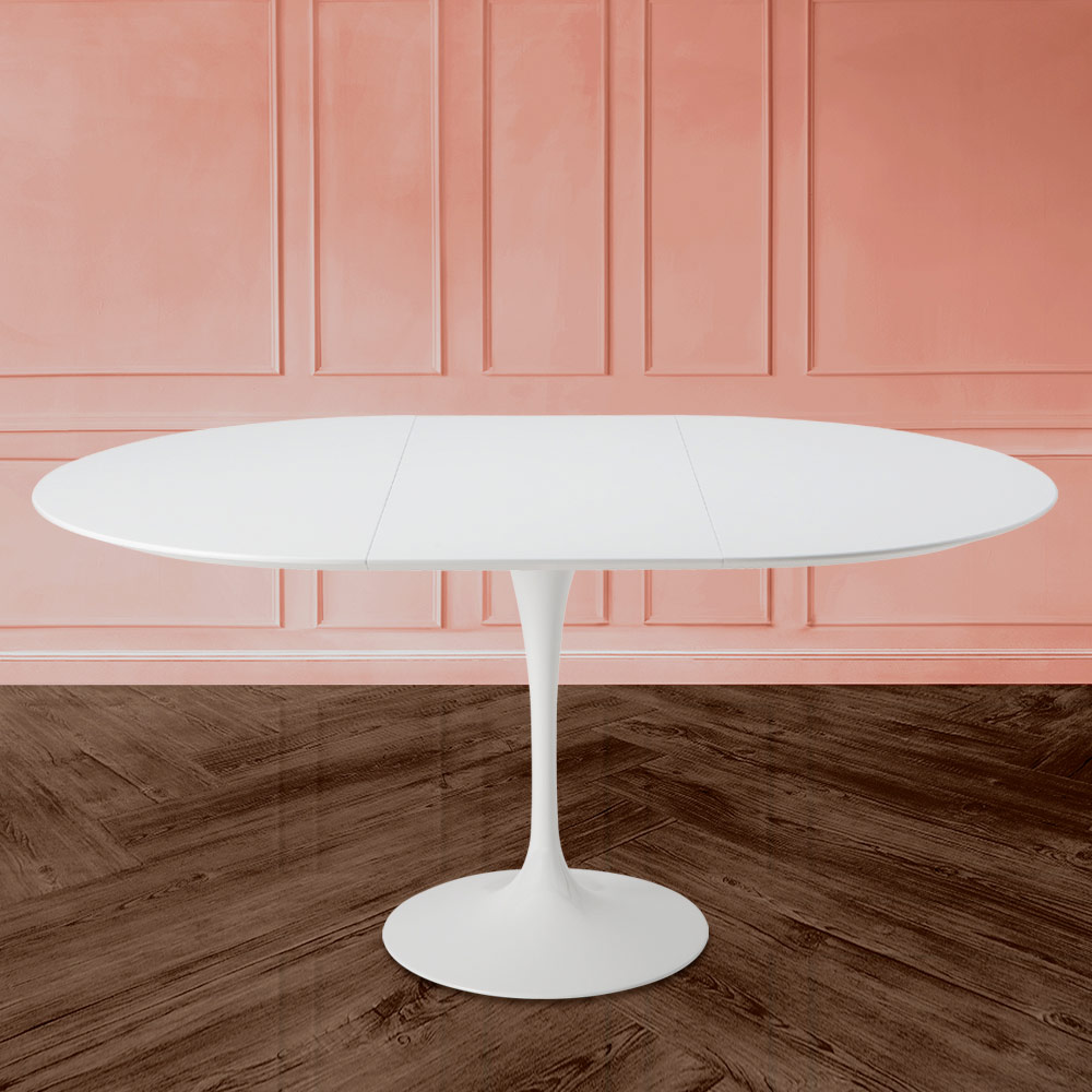 Extendable dining table to 187 cm with white liquid laminate top and white polished aluminum base entirely Made in Italy . This piece of furniture responds to the needs of functionality and adaptability of any living and kitchen environment. Refined and with simple lines, it can be inserted into all furnishings to better complete each room. The possibility of being extended makes it a unique element that responds to the need to have more diners, thanks also to the shape of the base that favors the insertion of many chairs. This table is the perfect idea to have something original and elegant but at the same time useful for all occasions and events.
