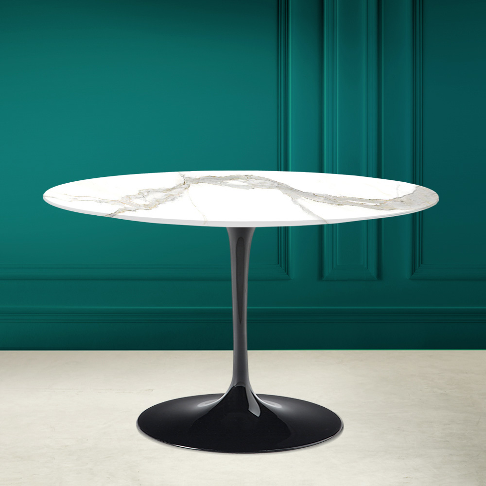 Dining table in calacatta michelangelo ceramic and polished aluminum Made in Italy