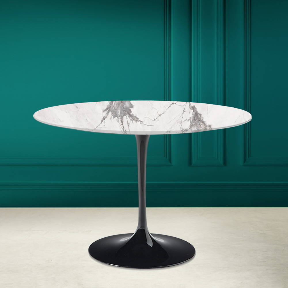 modern and lively veining that gives the table an original and refined touch and the polished aluminum of the base provides