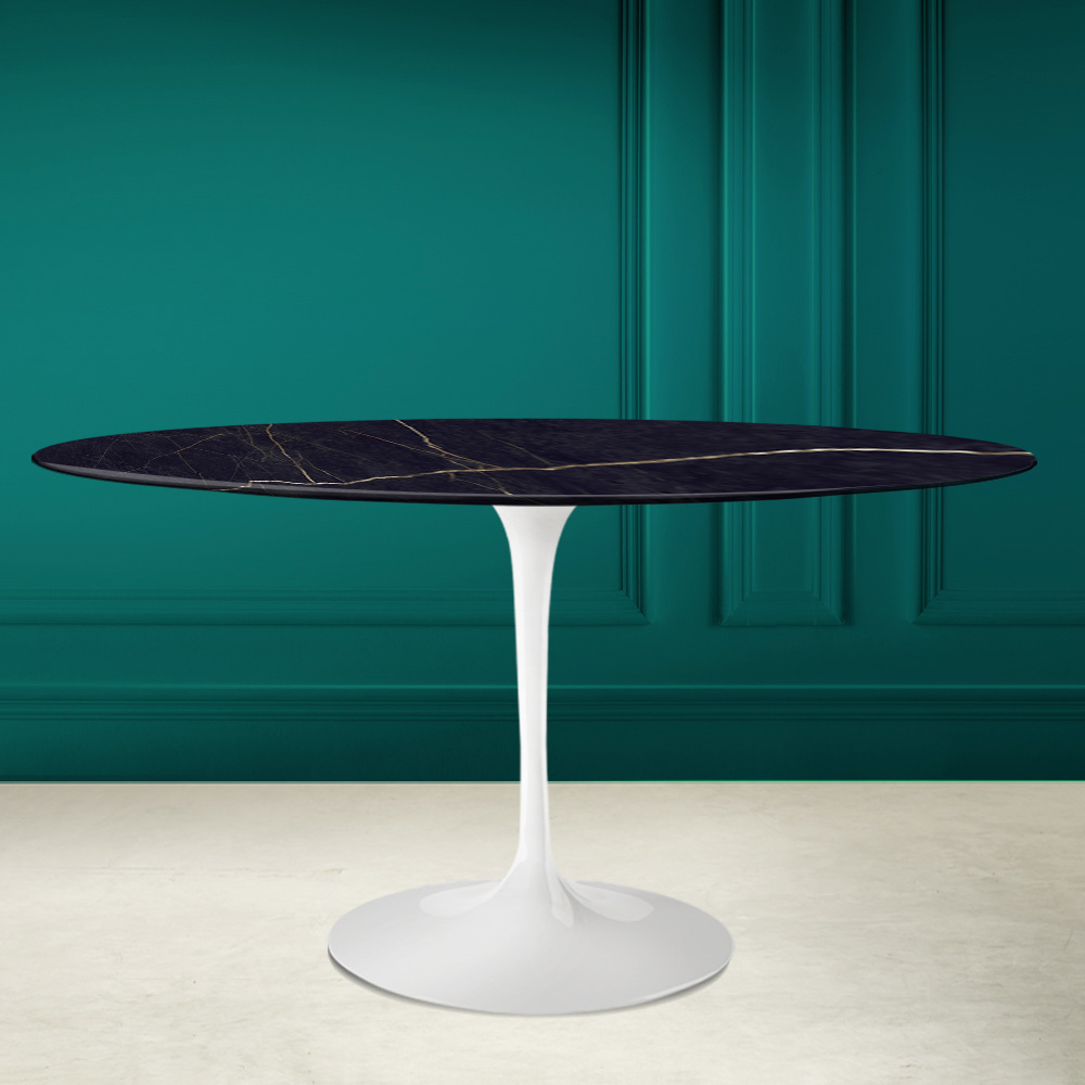 polished aluminum base. This table is the perfect element to give an original touch to any living room and kitchen thanks to the oval shape and noir laurent ceramic. The