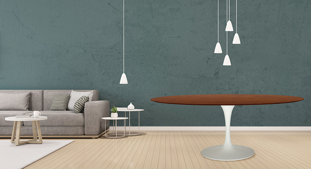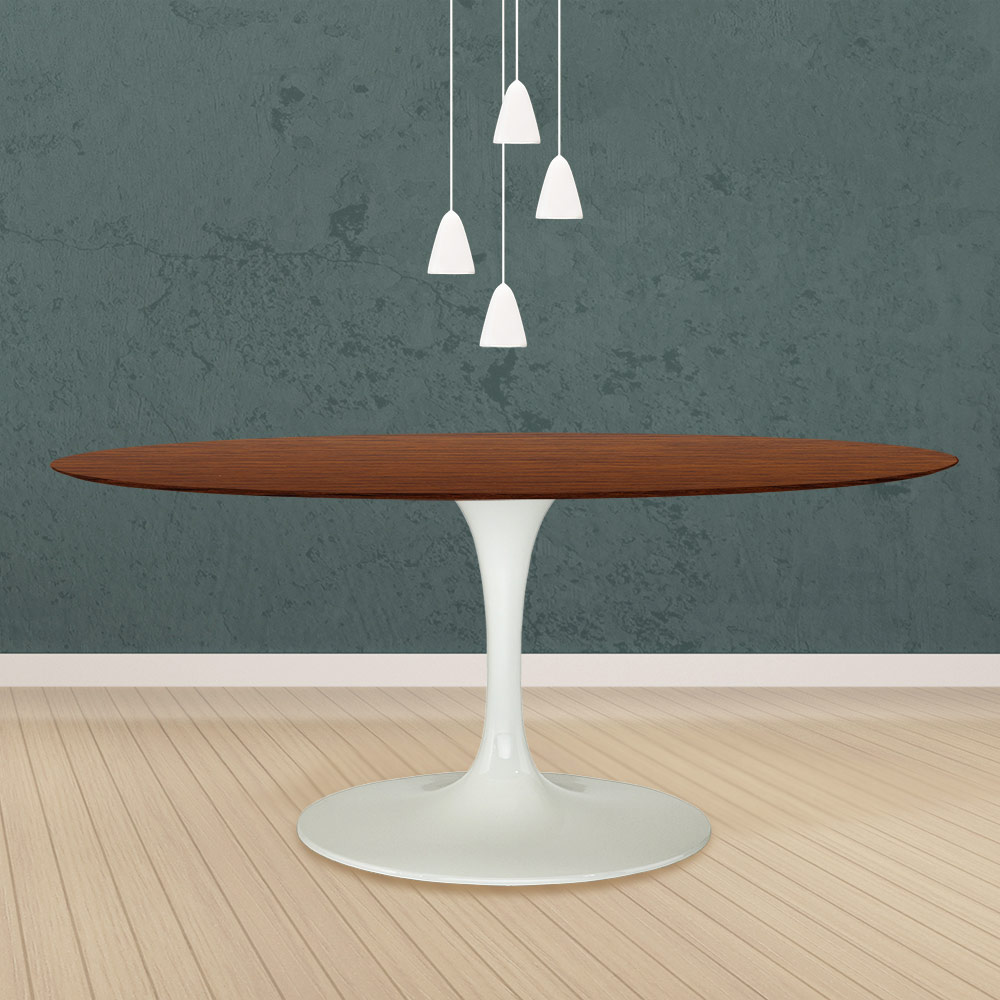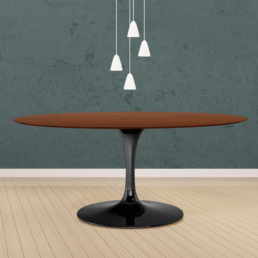 Oval dining table in dark walnut stained oak and polished aluminum base Made in Italy