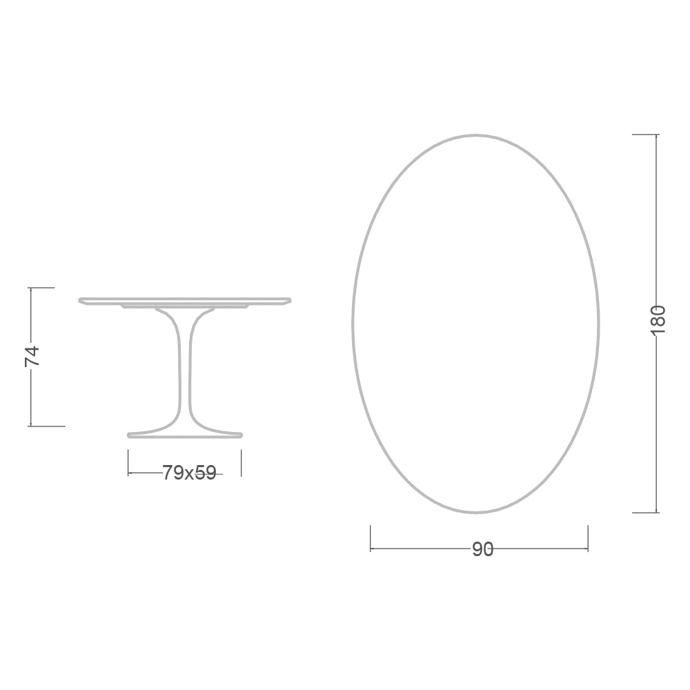 - Table top: 180 x 90 / Oval base: 79 x 59 cm x H 73 cm