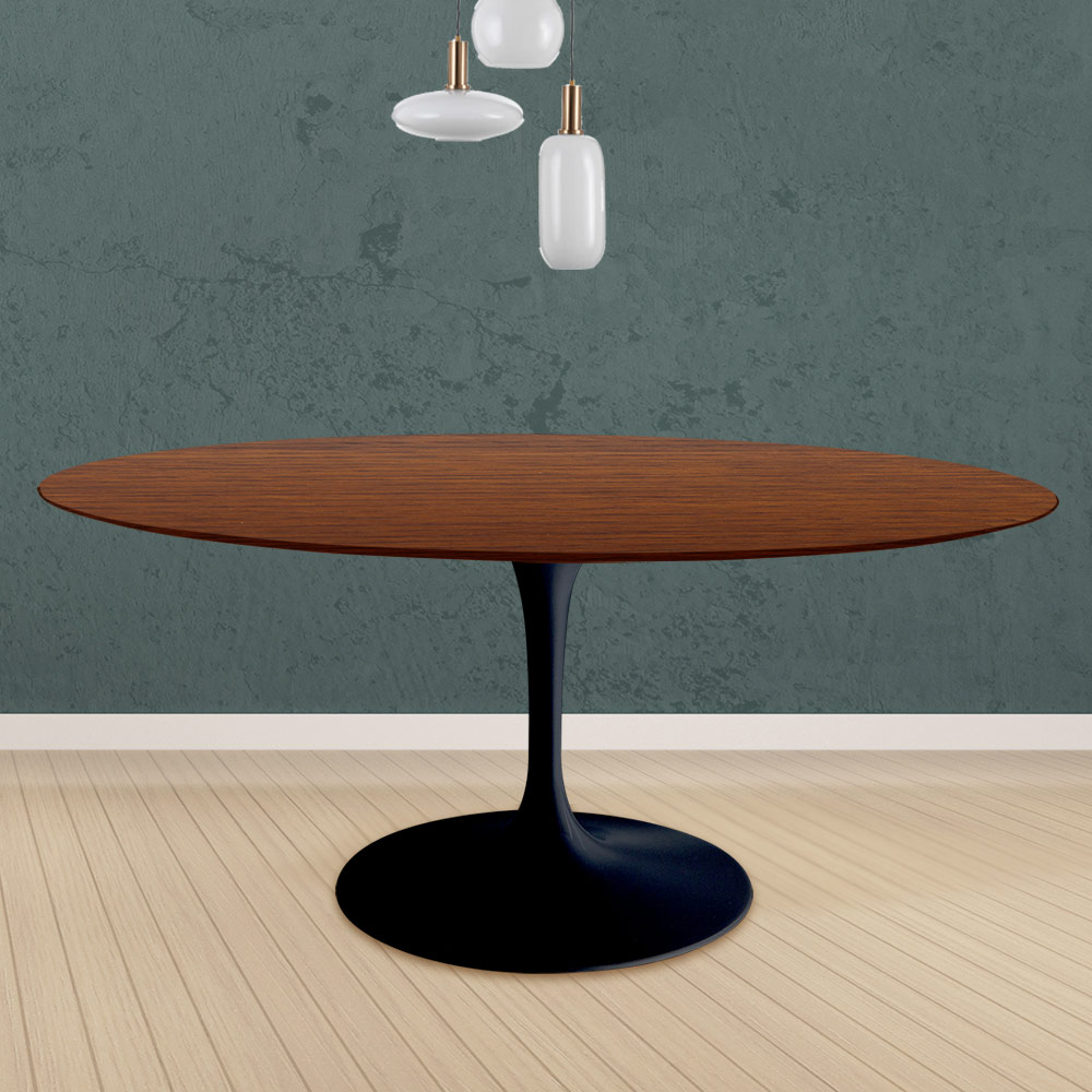 Round dining table in dark walnut stained oak and polished aluminum base Made in Italy