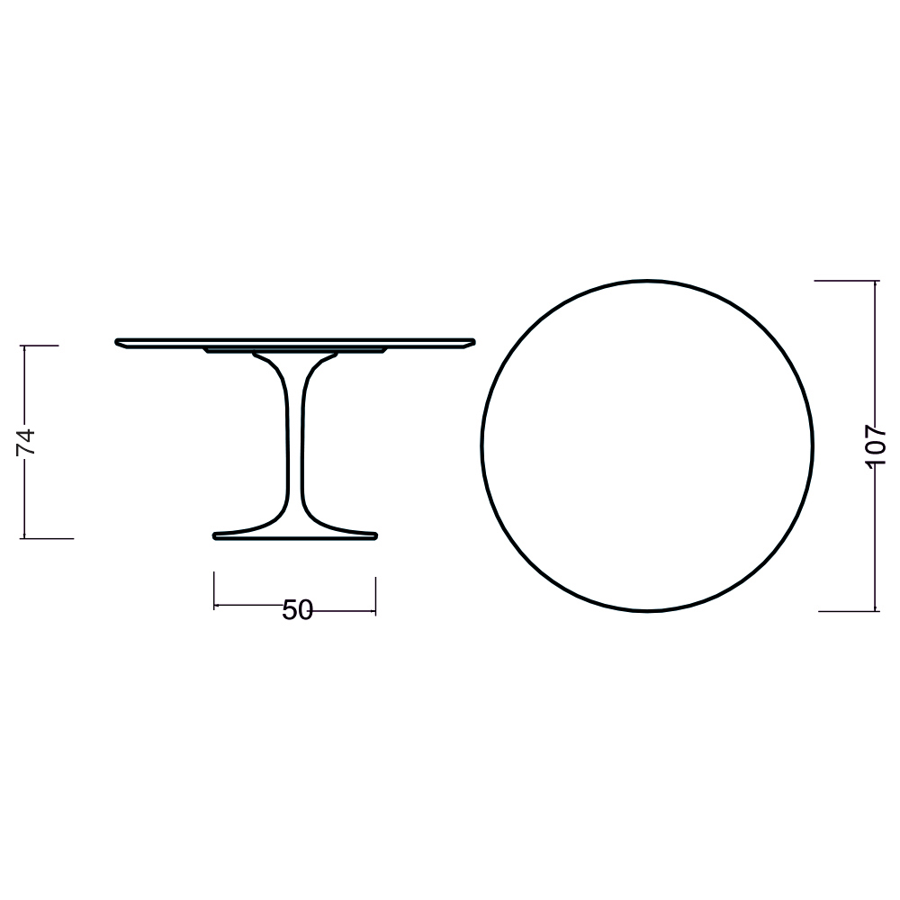 Table top diameter 107 x height 74 cm / Base diameter 50 cm