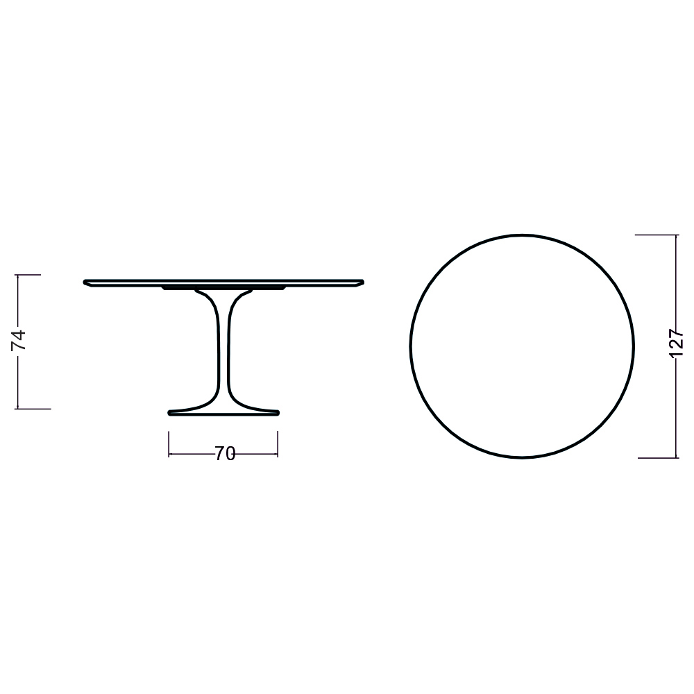 Table top diameter 127 x height 74 cm / Base diameter 70 cm