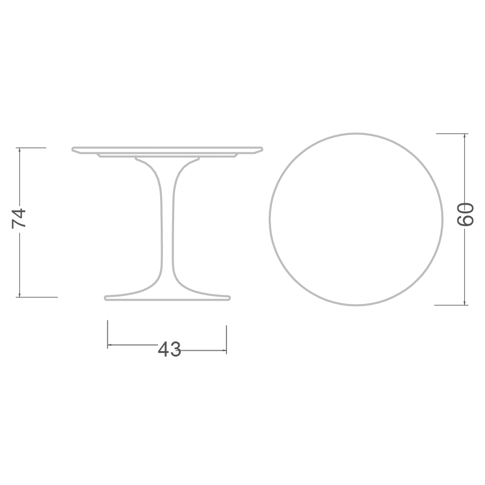 Available basic finishes: Available sizes:- Table top diameter 60 x height 74 cm;