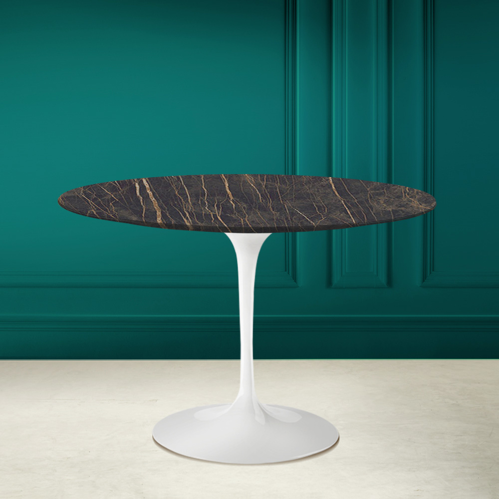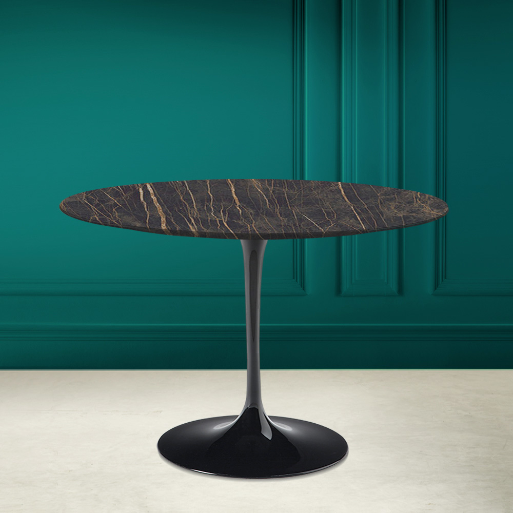 Dining table with round top in noir desire ceramic Made in Italy