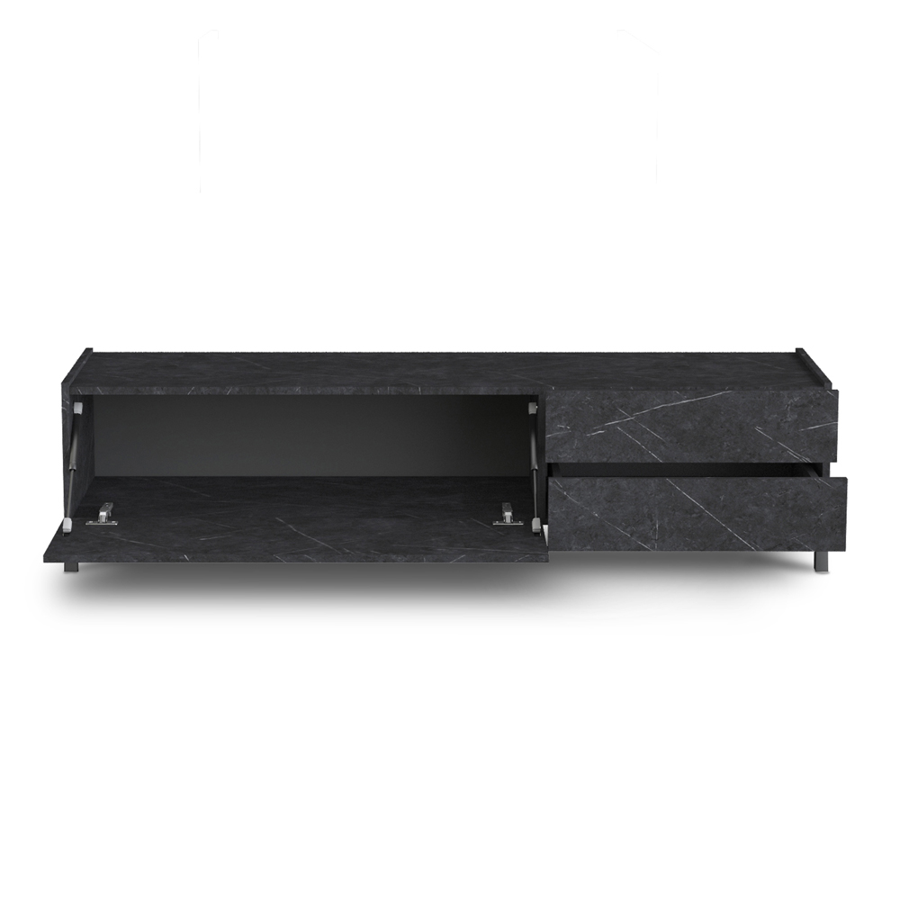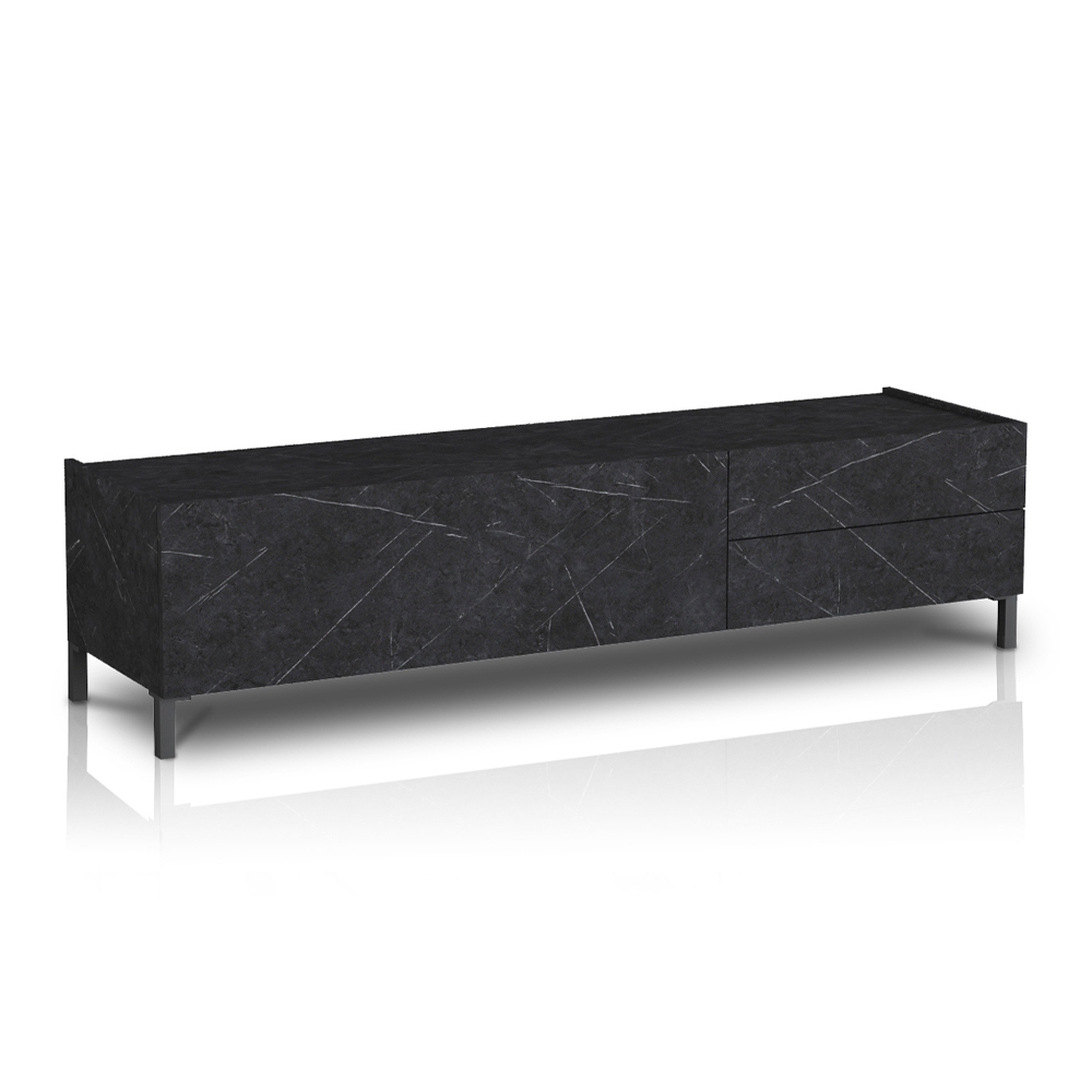 1 folding door, 2 drawers and adjustable feet . Thanks to its finishes, this piece of furniture is perfect for completing the furnishings of any living room and lounge. It offers