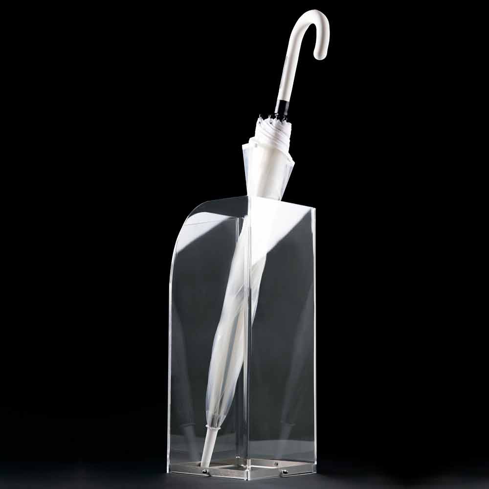 Umbrella stand in transparent plexiglass smooth minimal design made in Italy.