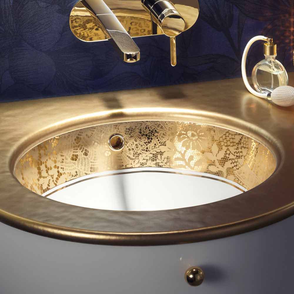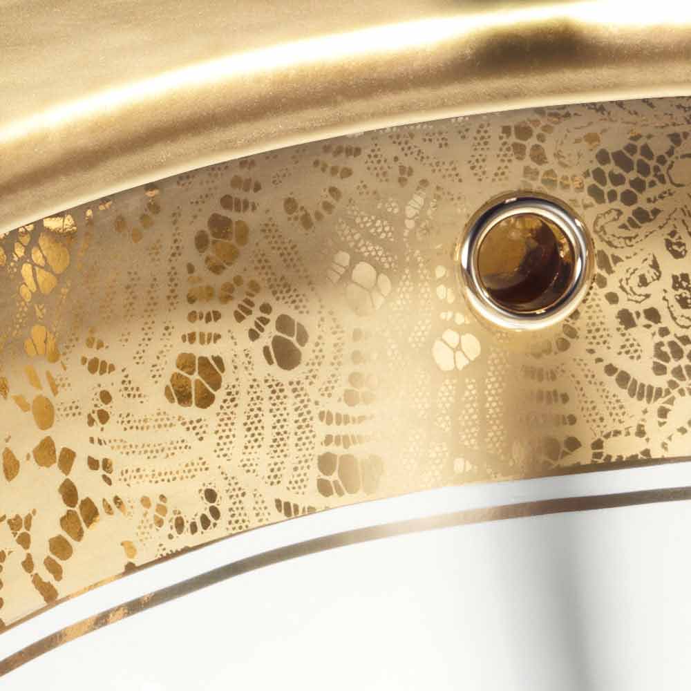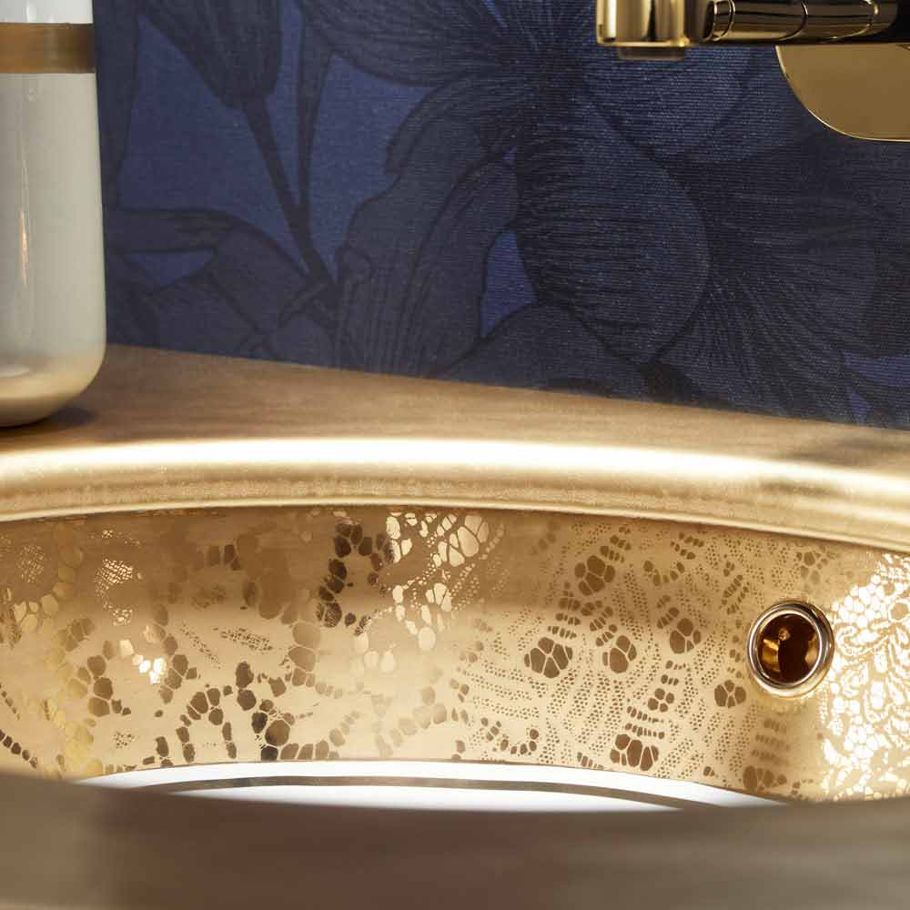 Undercounter washbasin in fire clay and gold handmade in Italy, Egeo