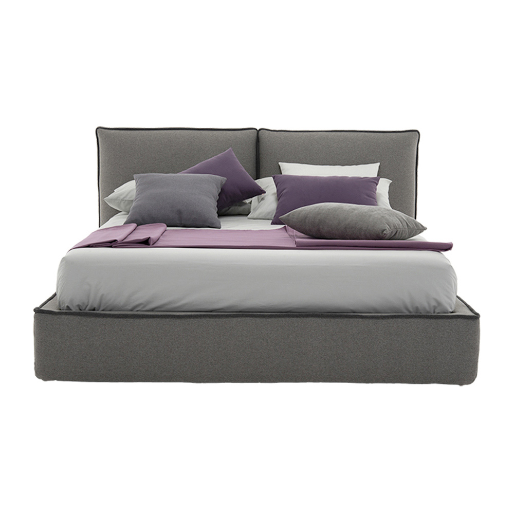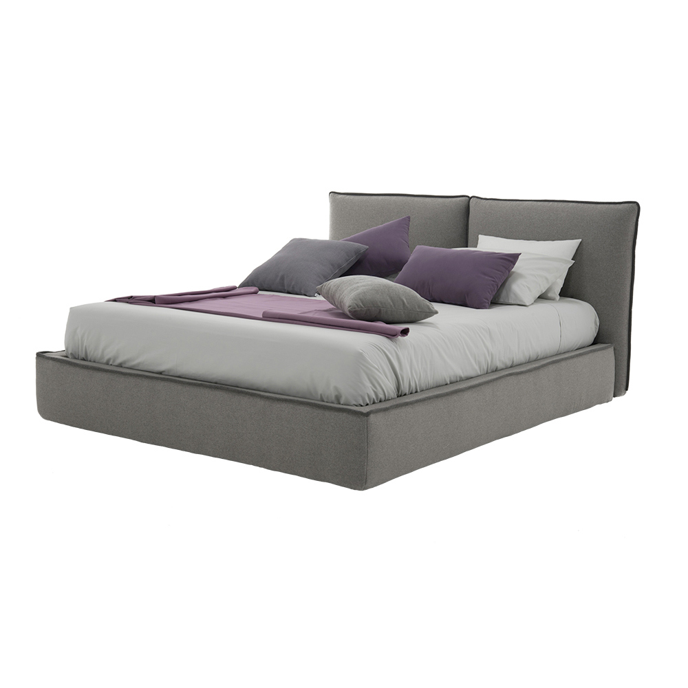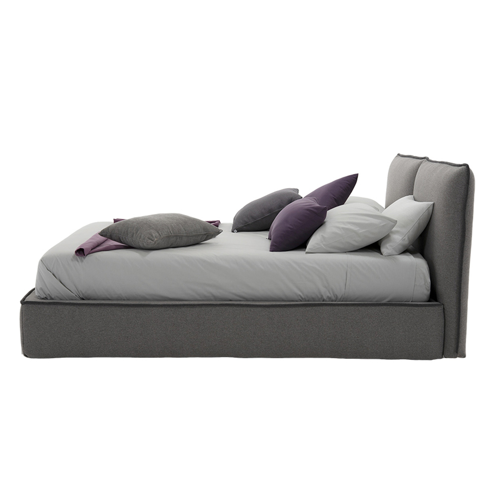 High quality double bed upholstered in fabric or eco-leather, handcrafted in Italy with storage box.