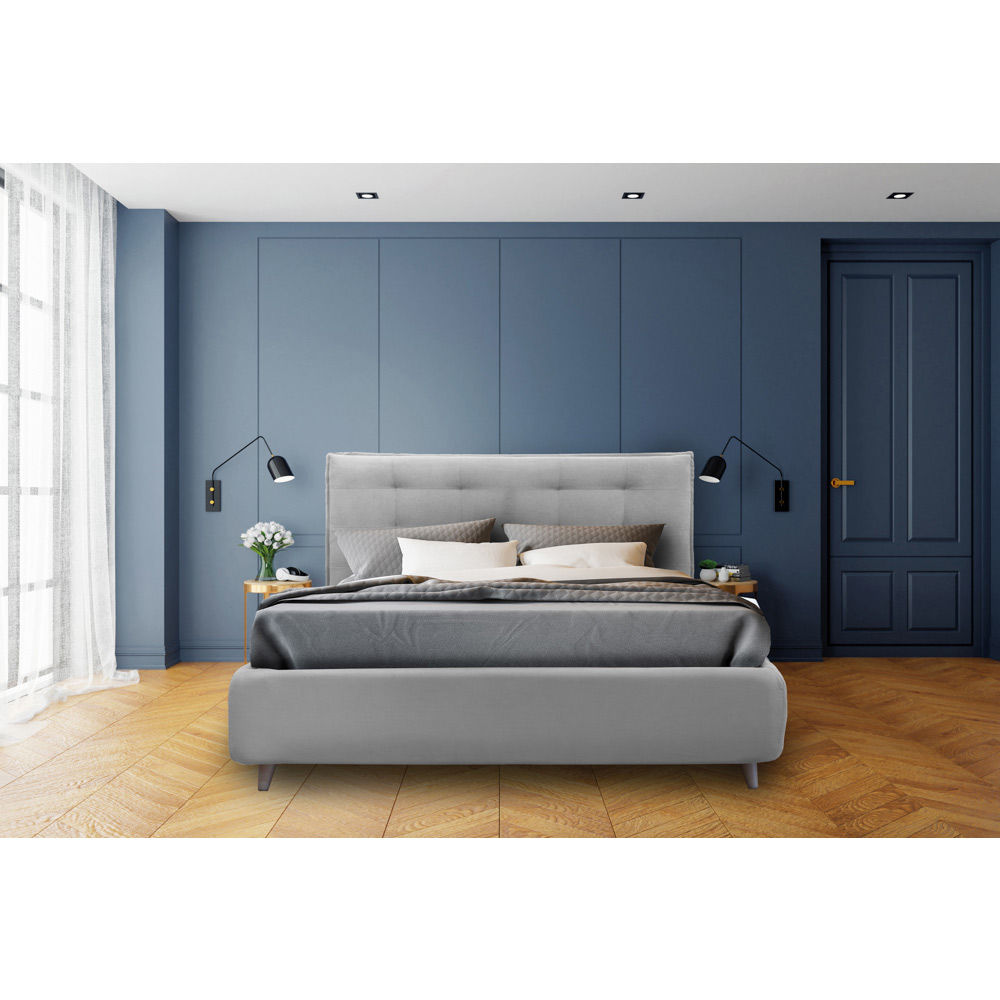 Model with comfort container : padded bed frame with supported base included and comfortable 11 cm high foot which allows cleaning under the structure. Container with oblique and horizontal opening which adds the practicality of a large compartment with incredible capacity and guarantees maximum convenience when making the bed.