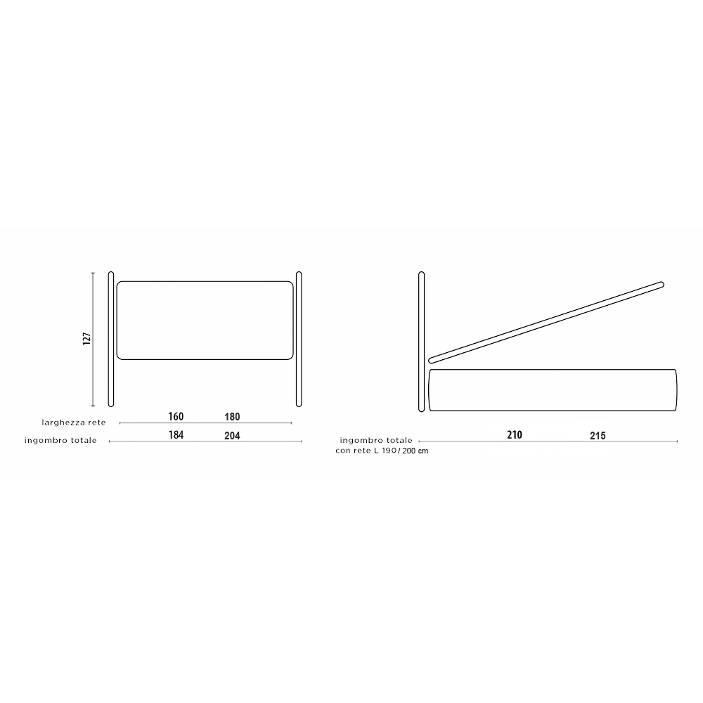- 204 x 215 x height 127 cm - bed base 180x200 cm