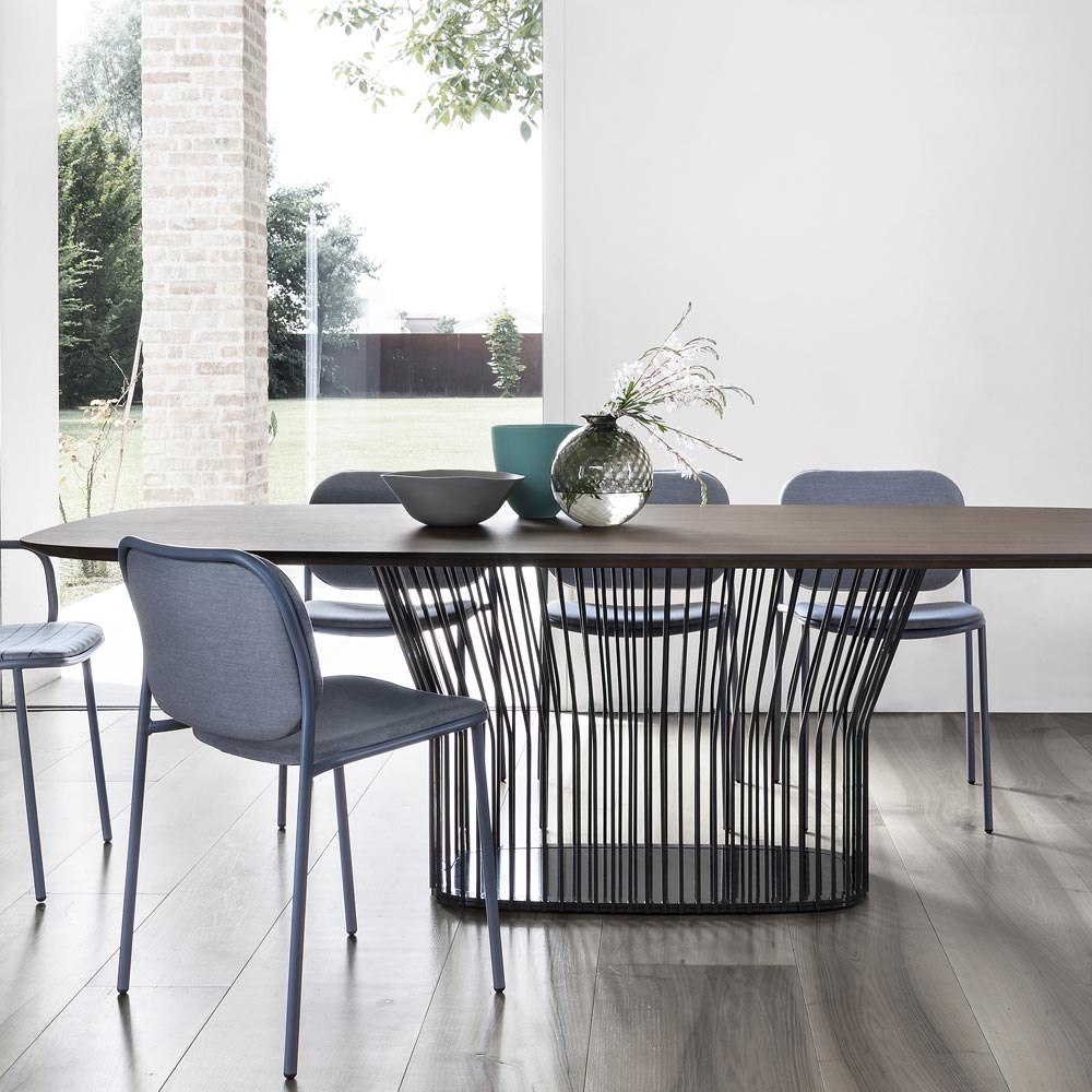 welcoming and comfortable seat, ideal for treating yourself to precious moments of relaxation during lunches and dinners in modern style kitchens or dining rooms. The possibility of stacking also emphasizes its functional side and makes it a perfect solution also for contract environments such as bars and restaurants where it is essential to be able to optimize spaces when the chairs are not in use.
