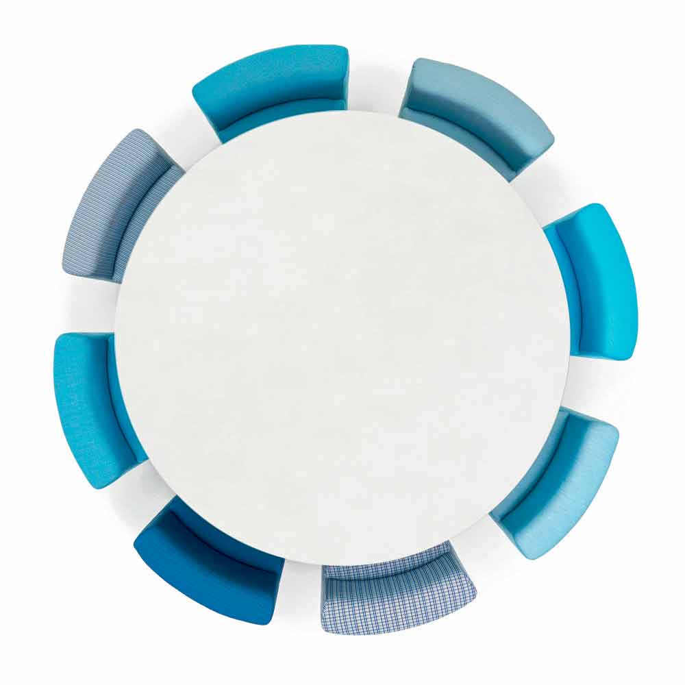 This outdoor furniture set includes one garden table and 8 garden armchairs. The table top is made of white HPL which is 12 mm thick. The armchairs can be stored under the table, in order to save space when you don't use them.