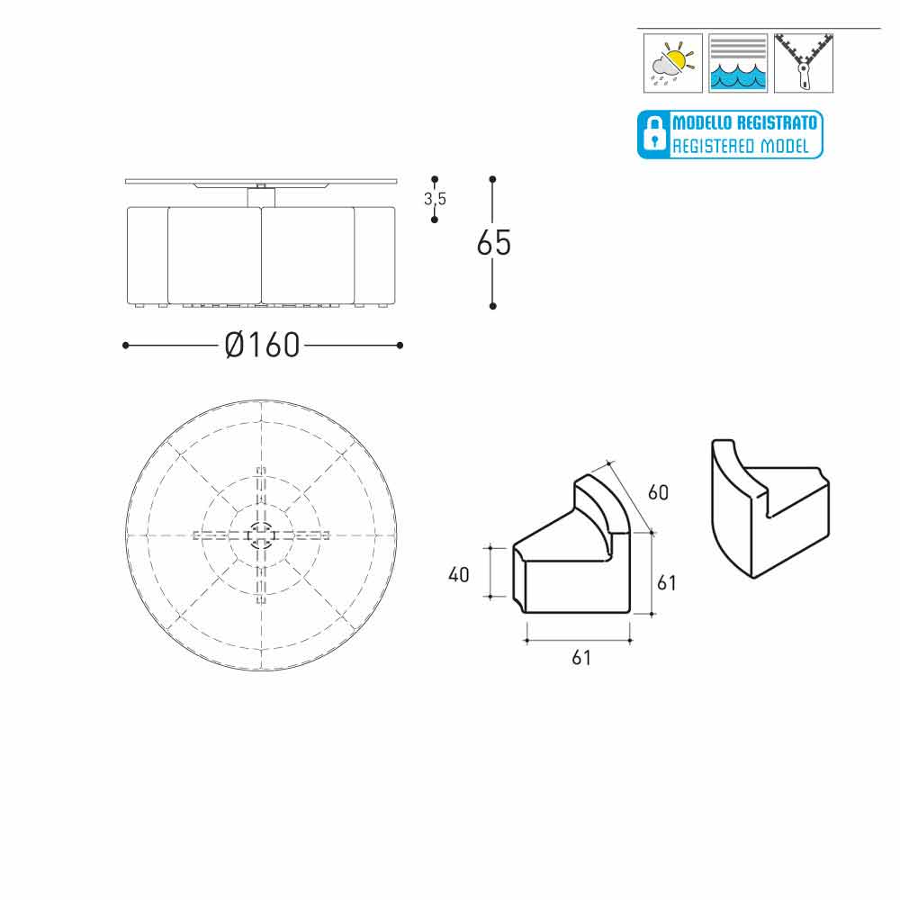 NB: The collection withstands sunlight and rain. We recommend regular maintenance and special attention to protecting items in the case of bad weather conditions (ice, hailstones, sudden changes in temperature, persistent humidity, extreme heat or cold). The duration and good condition of our products depends on the care with which they are kept. Although aluminium and steel products (430, 304EP, 316) are protected by treatments and finishes suitable for outdoor use, it is essential not to let water stagnate in the product. All articles carry the necessary perforations for applying protective treatments and finishes. Water stagnating in these holes may cause rusting on the inside of the tubes.