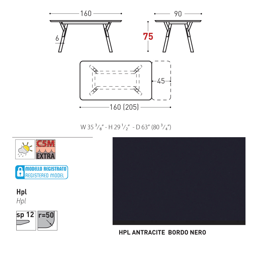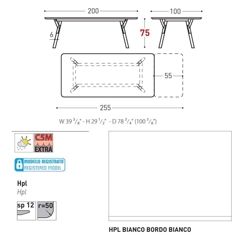 Characteristics HPL: high pressure laminates. They consist of numerous layers of paper (70%) impregnated with thermosetting resins (30%) and compacted through the combined action of heat (about 150 degrees) and high pressure (greater than 7Mpa) for about 45-50 minutes. The result is a stable, non-reactive, non-porous and high-density product, with physical and chemical characteristics of high mechanical resistance (controlled temperature range +80; -40 degrees, over a limited time of less than 30 seconds at extreme temperatures), exposure to light and exposure to temperature changes, even in marine environments.