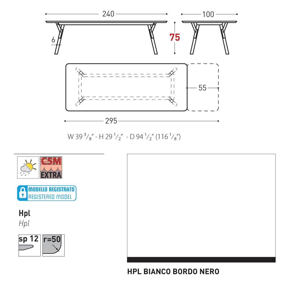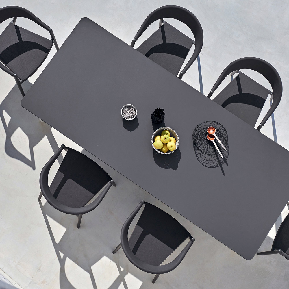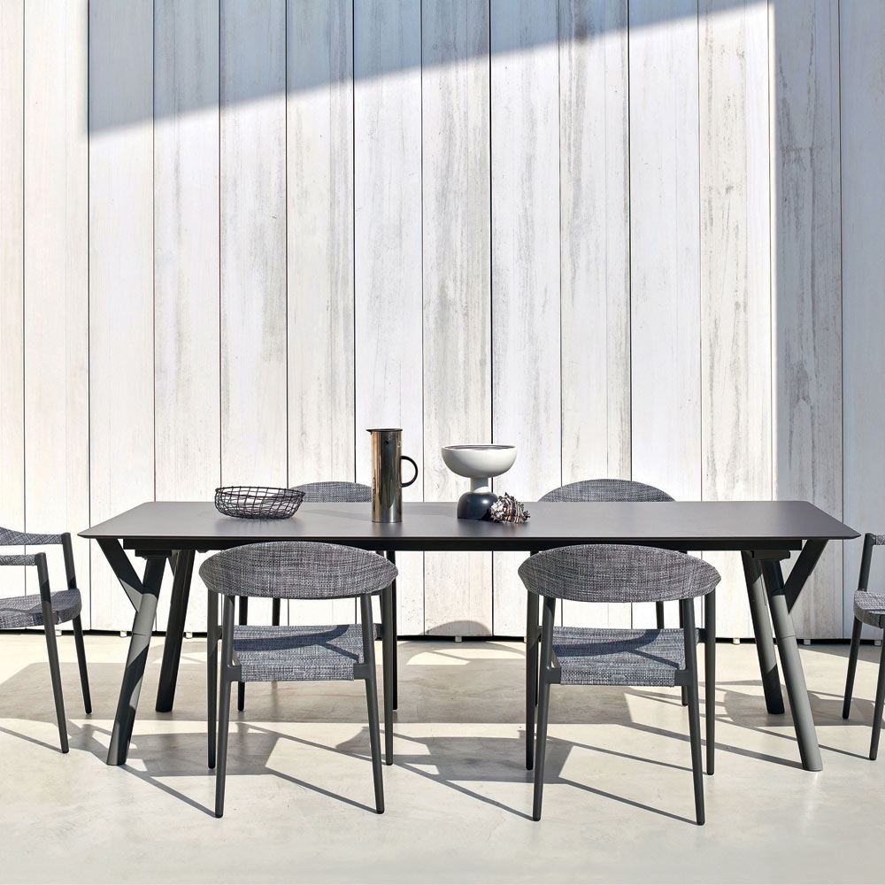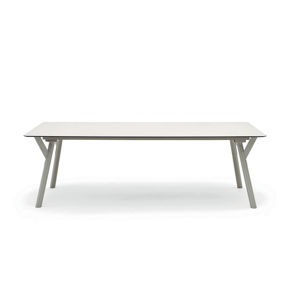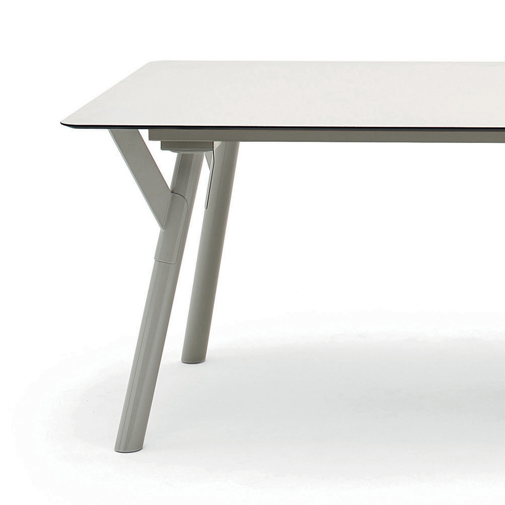 Link is a modern design table with structure (bracket + legs) in painted stainless steel. The top is available in HPL (thickness 12 mm) or in teak wood (thickness 30 mm). Thanks to its versatile design, it can be used both as an extendable outdoor table and to furnish indoor environments. Different finishes are available with which to customize the structure, legs and table top.