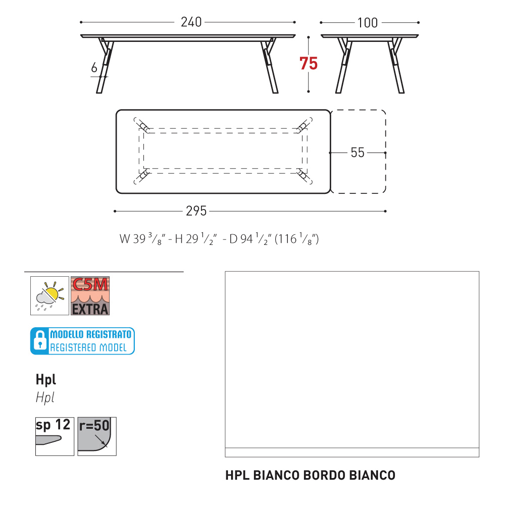 100x240/295xH73.2 cm - 1 extension of 55 cm