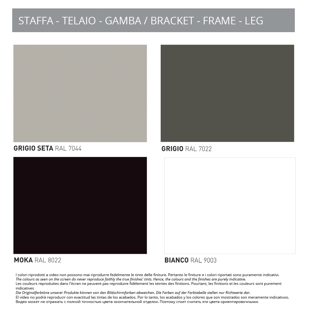 How to choose the finish: select the desired size and top variant from the drop-down menu. View the color chart and indicate the code of the desired finish for the structure and legs in the appropriate box.