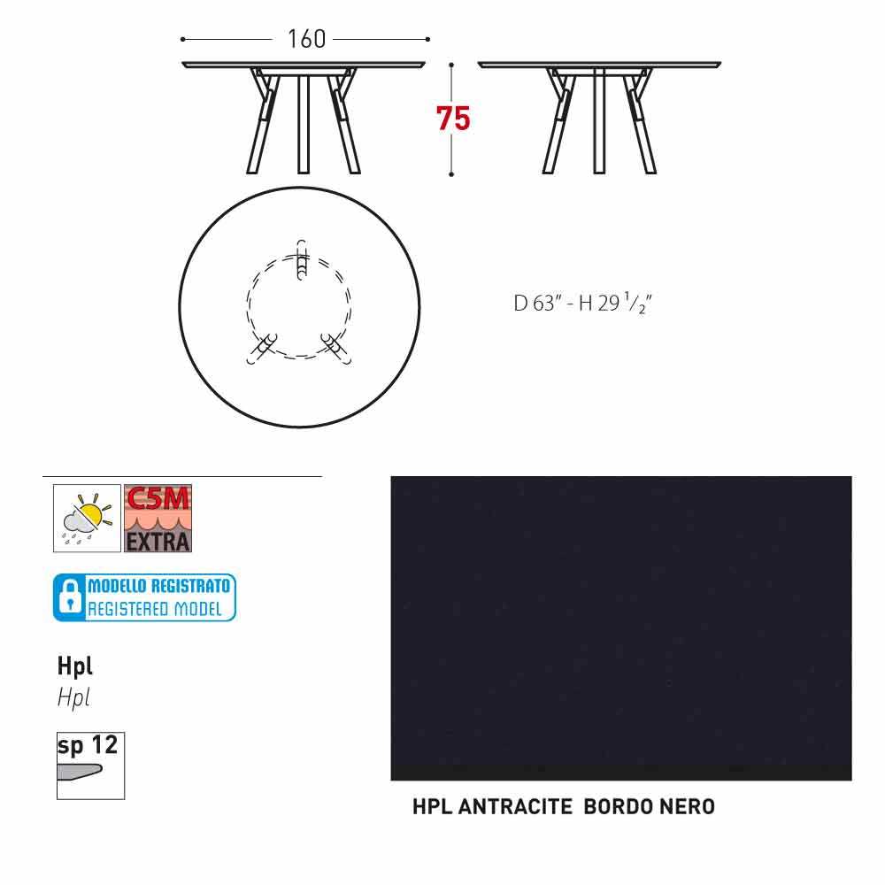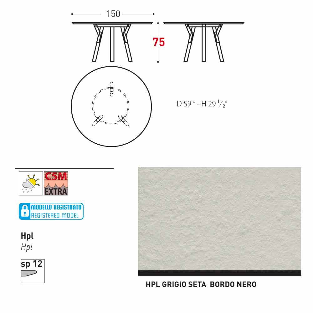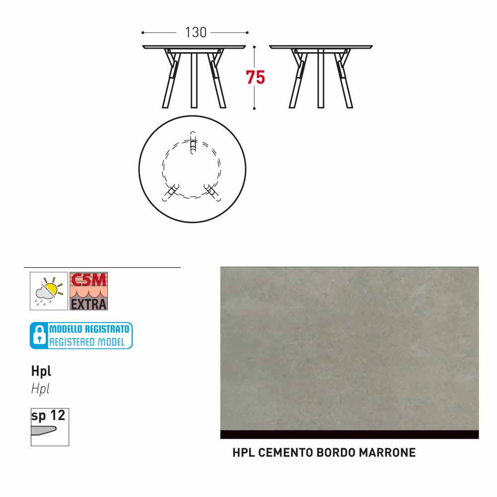 HPL technical features : High-pressure laminates. They are made of several layers of paper (70%) impregnated with thermosetting resins (30%) and compacted for about 45-50 minutes through the combined action of heat ( at about 150 degrees) and high pressure (greater than 7 MPa / Megapascal per square meter.) The result is a stable, nonreactive, non-porous and high-density product. It has physical and chemical features of high mechanical strength (controlled temperature excursion +80/-40 degrees, for less than 30 seconds at extreme temperatures). It resists to light exposure and temperature variations, even in marine environments.