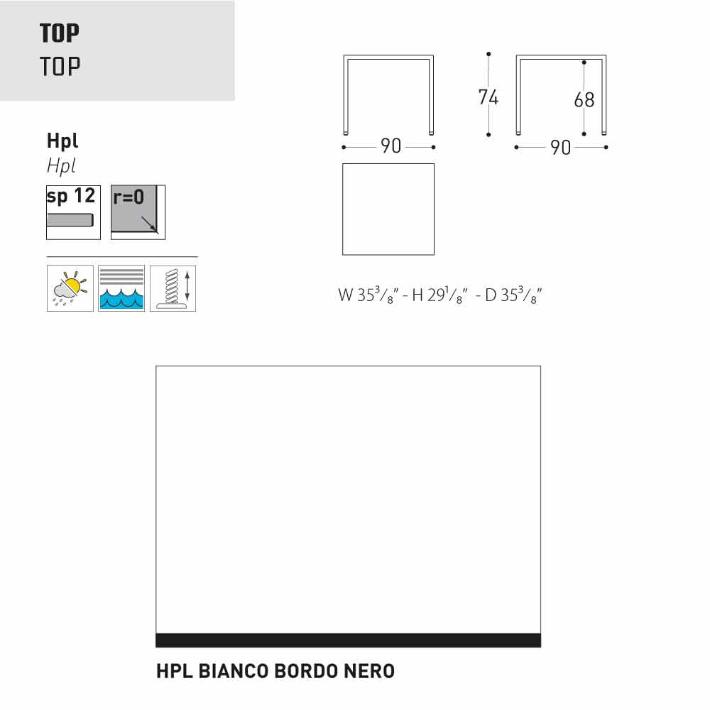 HPL technical features : High-pressure laminates. They are made of several layers of paper (70%) impregnated with thermosetting resins (30%) and compacted for about 45-50 minutes through the combined action of heat ( at about 150 degrees) and high pressure (greater than 7 MPa / Megapascal per square meter.) The result is a stable, nonreactive, non-porous and high-density product. It has physical and chemical features of high mechanical strength (controlled temperature excursion +80/-40 degrees, for less than 30 seconds at extreme temperatures). It resists to light exposure and temperature variations, even in marine environments.