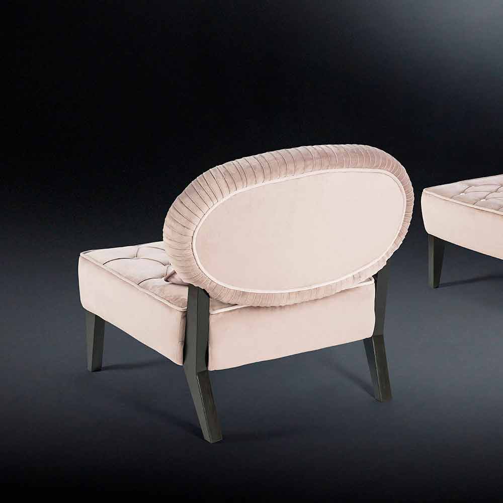 Velvet armchair Elizabeth, with buttoned upholstery, made in Italy.
