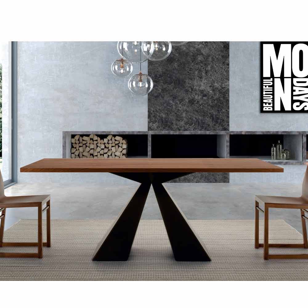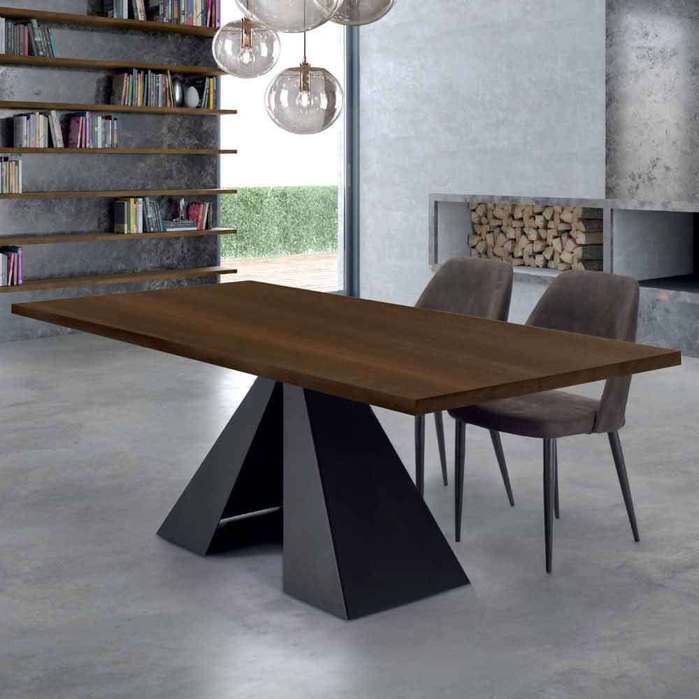 Dining table with veneered top and steel base Made in Italy, high quality.