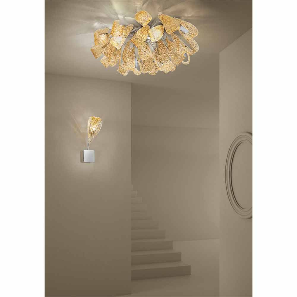 A 100% Made in Italy production that has its roots in the authentic tradition of Venice , a city with a strong history of ten years and a source of inspiration for glass processing . Each element, finely worked by skilled artisans expert in the sector , tells of ancient techniques handed down over the years that have brought the true essence of glass to this day, telling through the light its values of experience , authenticity and propensity for beauty . The impulse to offer furnishing solutions that respect tradition blends with the desire to create something innovative to offer classic accessories complete with cutting-edge technologies to furnish your rooms with style, recalling the past. What is born is a furnishing proposal that seems to be forged by light, designed to decorate contemporary environments with all the class and elegance with which it illuminated the large halls of ancient buildings .