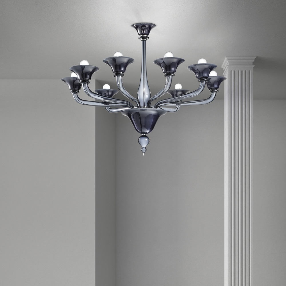 8 lights chandelier in Venice glass and metal Made in Italy.