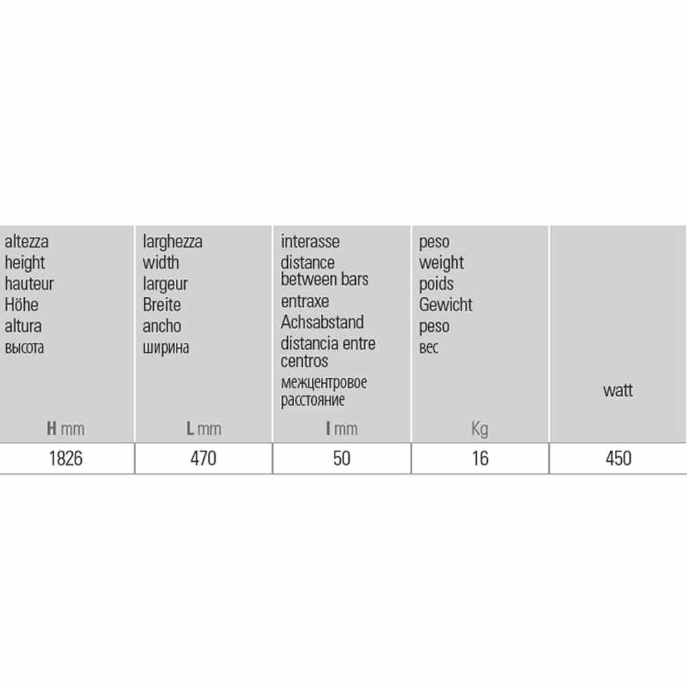 Measures H 1826 x L 210 x Inter.50 mm x Yield 450 w